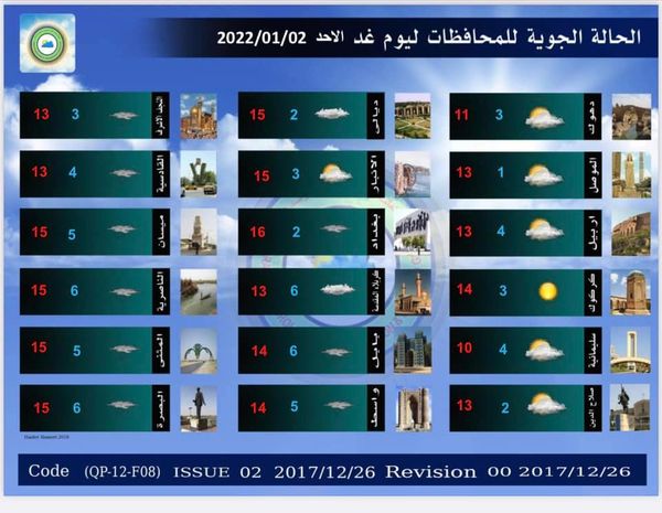 وذكرت الهيئة، في بيان تلقت “النعيم نيوز” نسخة منه، أنه “من المتوقع تساقط أمطار رعدية، وانخفاض بدرجات الحرارة“.