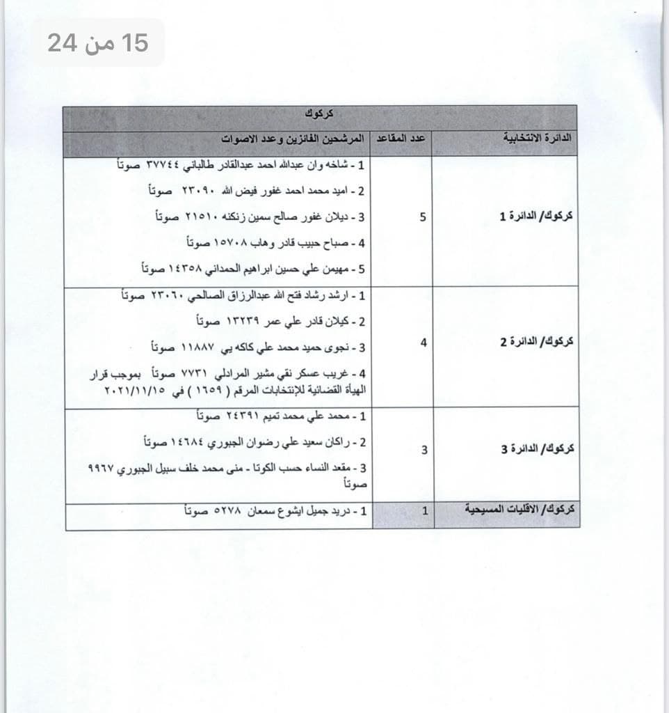 وأضاف، أن “الطعون أحدثت خمسة تغييرات في بغداد ونينوى وأربيل وكركوك والبصرة”، مبينا أن “عدد الناخبين الكلي بلغ أكثر من 22 مليونا”.