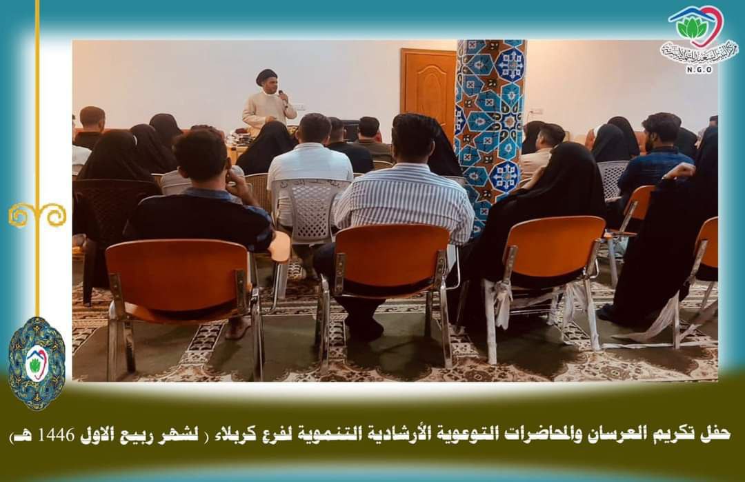 وأضاف، أن “مدير المركز السيد علي الحسيني، ألقى محاضرة إرشادية تربوية للعرسان، أوضح فيها الحديث عن أهم المشكلات التي تواجه الزوجين وكيفية حلها، لترتقي لحياة أفضل، فيما اختتم المحاضرة، بفتح باب النقاش والإجابة على الأسئلة، بالإضافة إلى توزيع الهدايا على المتزوجين، دعماً لهم مادياً ومعنوياً”.