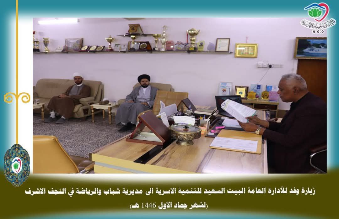 زار مركز البيت السعيد للتنمية الأسرية في النجف الأشرف، اليوم الاثنين، مديرية الشباب والرياضة، بالوفد المتمثل لمعاون المدير الشيخ بهاء الأسدي، والدكتور السيد حازم الحسيني مسؤول الإرشاد الأسري.