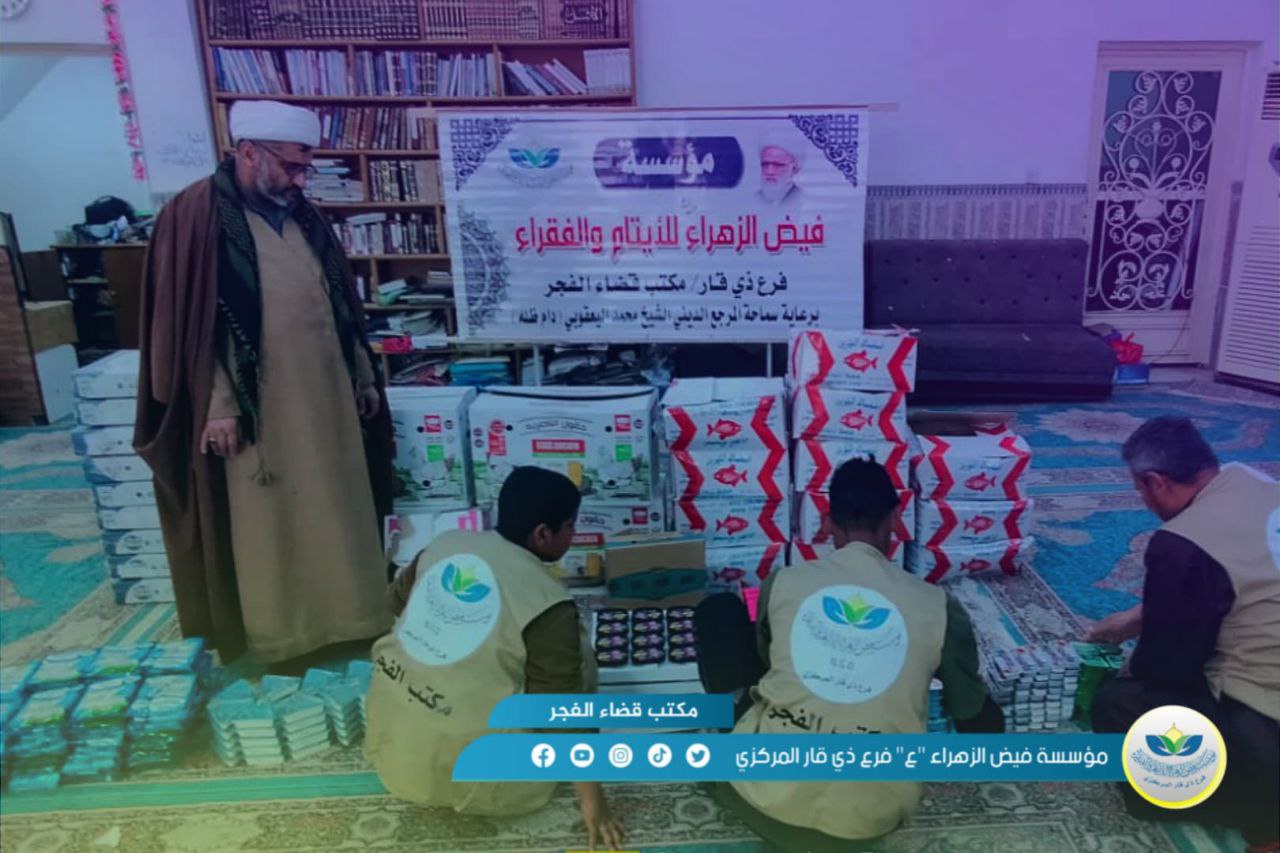 وزعت مكاتب مؤسسة فيض الزهراء (ع) في محافظة ذي قار، اليوم الأربعاء، سلات غذائية على العوائل الكريمة، وذلك في إطار مبادراتها الإنسانية خلال شهر رمضان المبارك.