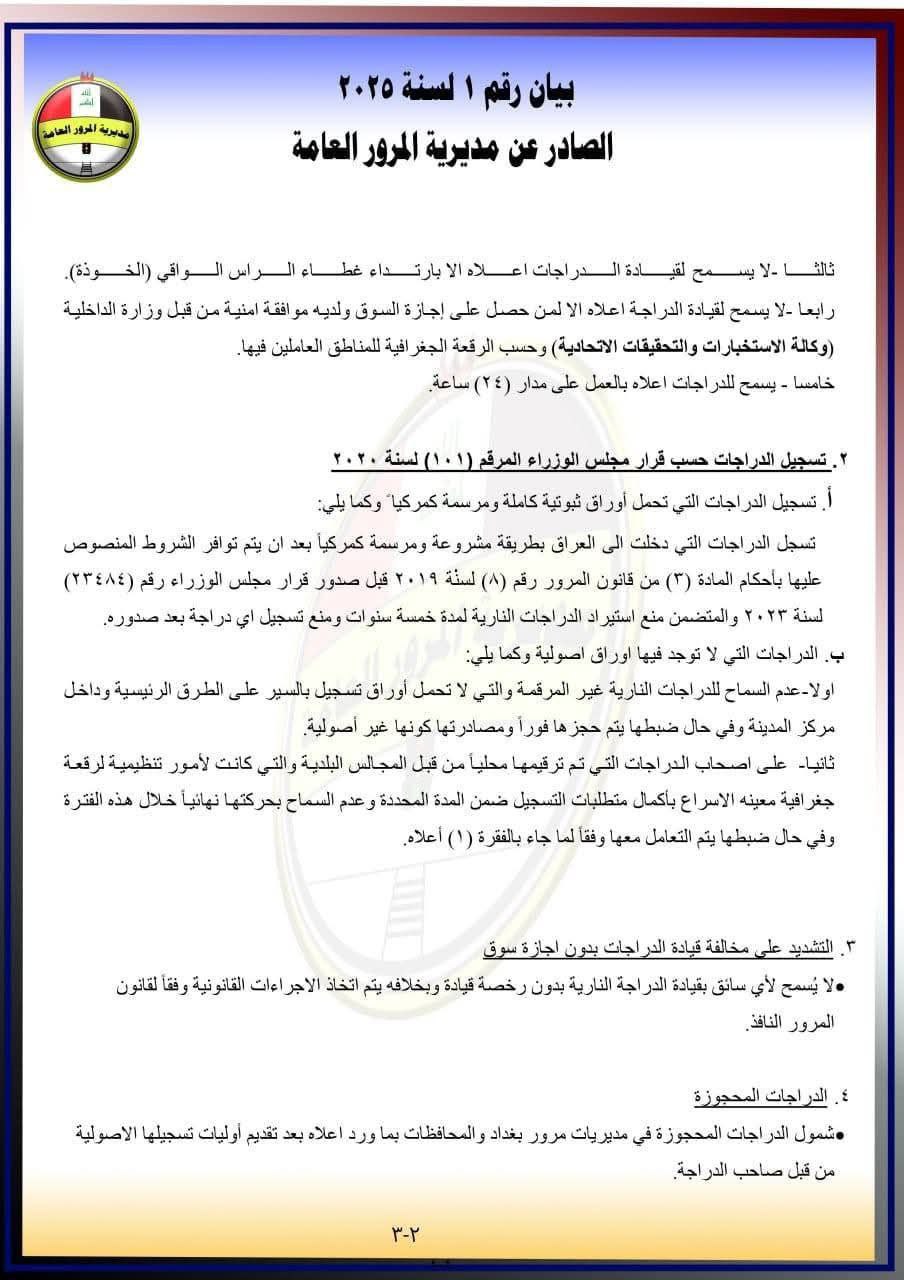 بالوثائق.. المرور العامة تصدر بياناً بخصوص تسجيل وتنظيم حركة الدراجات النارية