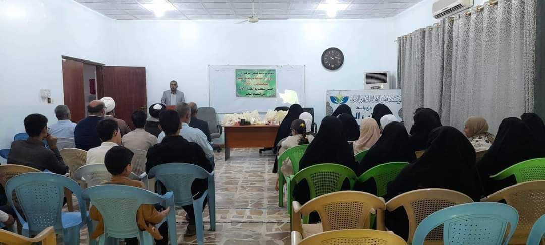 بحضور سماحة السيد سعد ابو رغيف والشيخ مسير الشحماني ومسؤول مؤسسة فيض الزهراء (ع) ومدير تربية الحي وعدد من الاساتذة الاجلاء والمدرسات الكريمات.