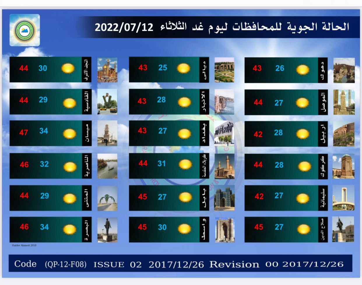 الأنواء الجوية تعلن حالة الطقس في البلاد للأيام المقبلة