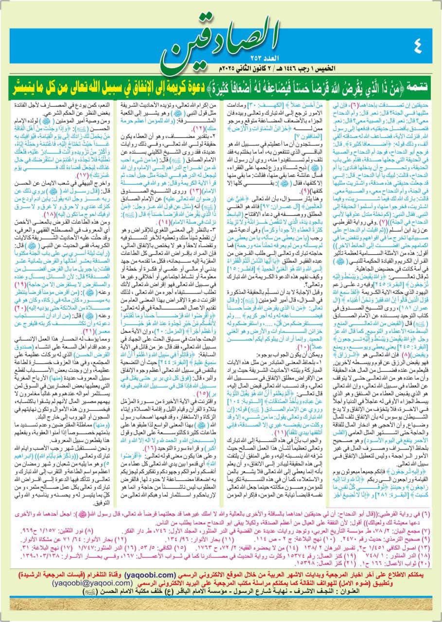 صدر عن المكتب الإعلامي لسماحة المرجع الديني الشيخ محمد اليعقوبي في النجف الأشرف، نشرة الصادقين العدد المائتان والثلاث والخمسون.