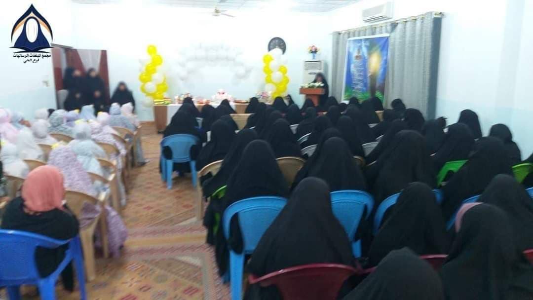 أقام مجمع المبلغات الرساليات وجامعة الزهراء للعلوم الدينية في قضاء الحي/محافظة واسط، أمس الجمعة، حفلاً بهيجاً لاستذكار سيرة حياة السيدة فاطمة الزهراء (ع)، واستلهام العبر والدروس من سيرتها العطرة.