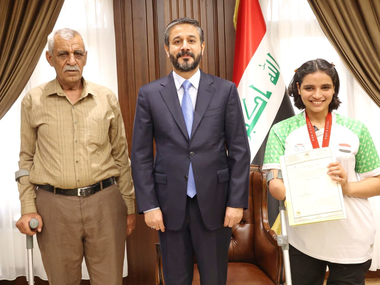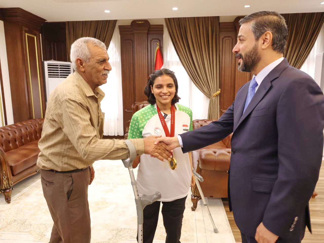 استقبل وزير التعليم العالي والبحث العلمي، نعيم العبودي، اليوم الأربعاء، البطلة العراقية نجلة عماد، التي حققت الميدالية الذهبية بدورة الألعاب البارالمبية في باريس.