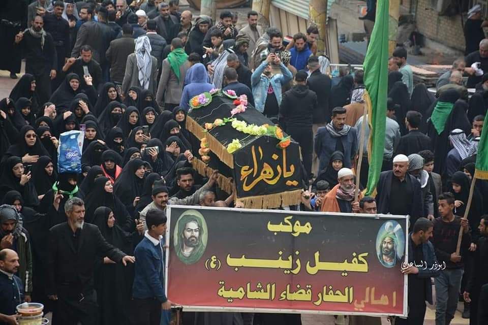 حيث توافد الملايين من الزوار من كل انحاء العراق والعالم لعزاء امير المؤمنين (ع ) بهذا المصاب مشيعين نعشها الرمزي جهارً نهارً تبيانً لمظلوميتها ع .