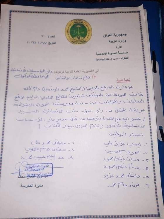 وجه مدير دار المؤسسات الإنسانية في محافظة كركوك حيدر الكناني، اليوم السبت، برفع النفايات وتصليح كبل كهرباء مقطع، لبعض مدارس المحافظة.