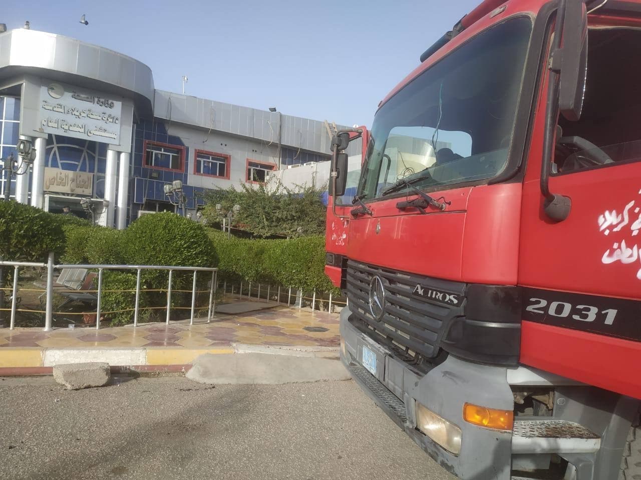 إخماد حريقاً اندلع داخل صالة العمليات في مستشفى الهندية العام (صور)