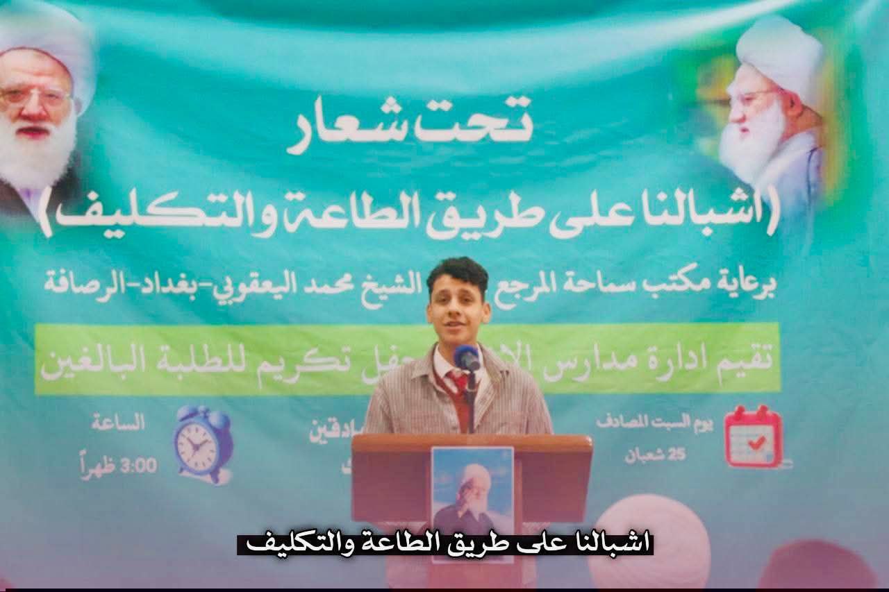 وذكر بيان للمدارس، تلقت “النعيم نيوز” نسخة منه، أنه “برعاية مكتب سماحة المرجع الديني الشيخ محمد اليعقوبي، أقامت إدارة مدارس أشبال بغداد/الرصافة، حفلاً مباركاً لتكريم الأشبال المكلفين بصيام شهر رمضان المبارك لهذا العام، وذلك على قاعة جامع الصادقين”.