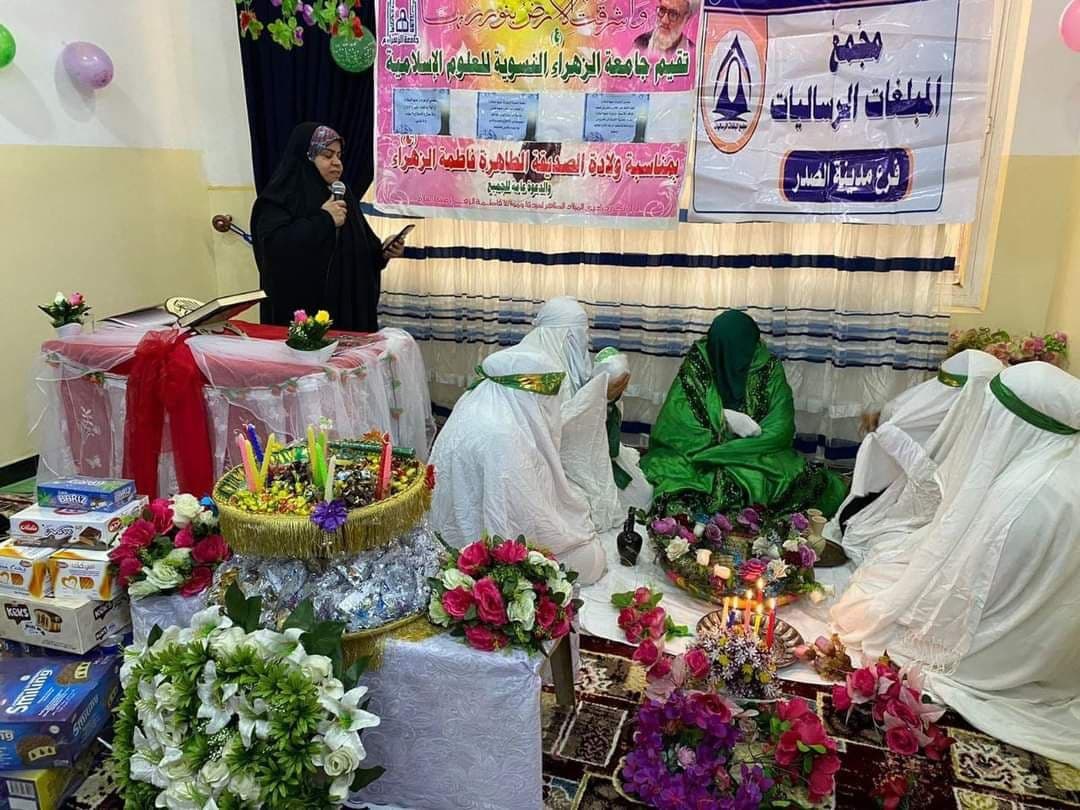 أقام مجمع المبلغات الرساليات في بغداد/مدينة الصدر/الرصافة الثالثة، وبالتعاون مع جامعة الزهراء للعلوم الدينية، أمس الأحد، حفلاً بهيجاً بمناسبة الولادة الميمونة للصديقة الكبرى فاطمة الزهراء (ع)، تحت شعار {علـّۓ. معرفتها دارت القرون الأولى}.