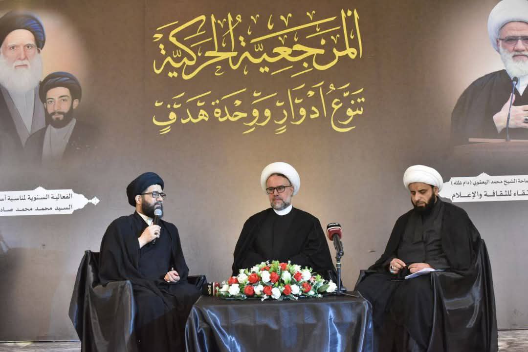 وذكر بيان لمكتب المرجعية، تلقت “النعيم نيوز” نسخة منه، أن “المهرجان، شهد حضور جمع من فضلاء الحوزة العلمية، وجمع من المؤمنين والمؤمنات”، مضيفاً أنه “وشارك فيه كل من الخطيب الحسيني السيد محمد الصافي، والشيخ محمد الفضلي، حيث ألقيا كلمات تمحورت حول دور المرجعية الحركية في توجيه المجتمع وتحقيق الإصلاح“.
