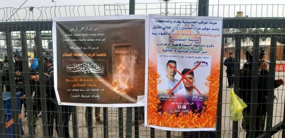 وأضاف، أن “المتظاهرين، أغلقوا بوابة مدينة السندباد لاند، التي تقع في منطقة زيونة، شرقي بغداد. على خلفية الحفلات الغنائية الأخيرة التي شهدتها المدينة. ورددوا شعارات دينية، وعبروا عن غضبهم من إقامة الحفلات الغنائية”.