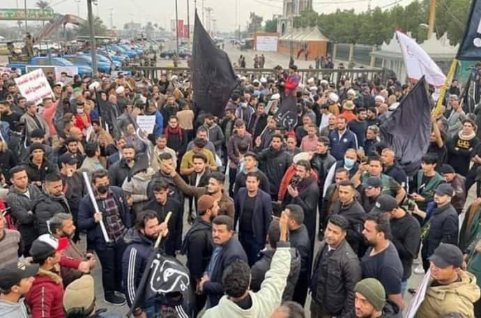 ‘استنكاراً لإقامة الحفلات الغنائية‘.. خدمة وأصحاب المواكب الحسينية يتظاهرون أمام “السندباد لاند” في بغداد