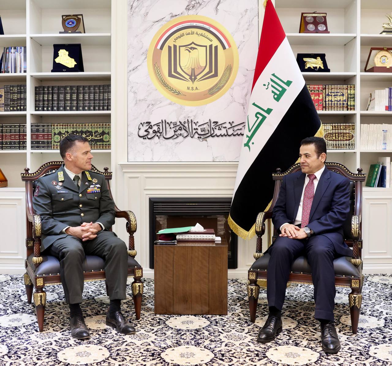 وذكر المكتب الإعلامي لمستشار الأمن القومي، في بيان تلقت “النعيم نيوز” نسخة منه، أن “مستشار الأمن القومي، قاسم الأعرجي، استقبل بمكتبه اليوم، قائد بعثة حلف شمال الأطلسي (الناتو) في العراق، الفريق لوكاس شخويرس، بحضور سفيرة البعثة، جولييت غوندي، والوفد المرافق لهما”.