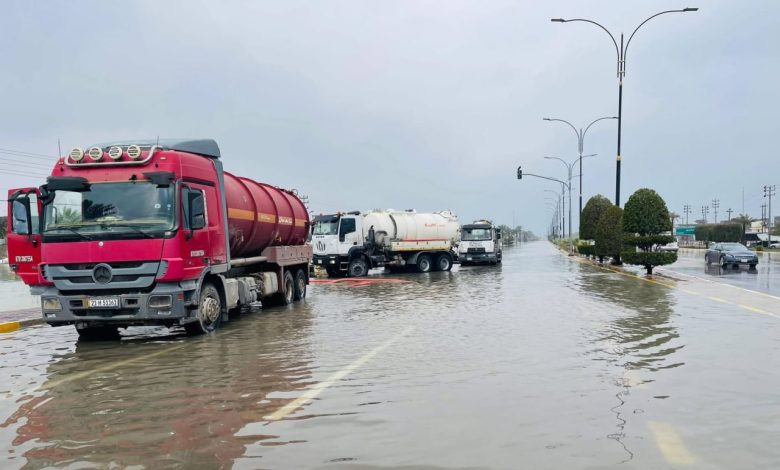 وأكدت الجهات المعنية أن “الأعمال مستمرة بوتيرة متصاعدة، مع تسخير جميع الإمكانيات لتصريف المياه المتراكمة، وتسهيل حركة المواطنين، والحد من آثار موجة الأمطار التي تشهدها المحافظة”.