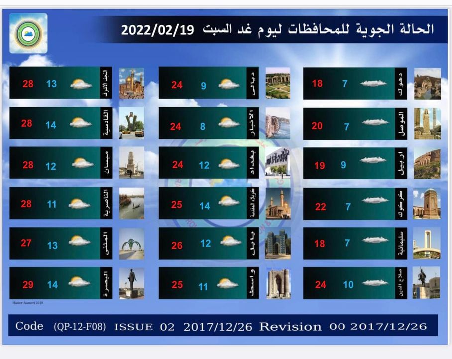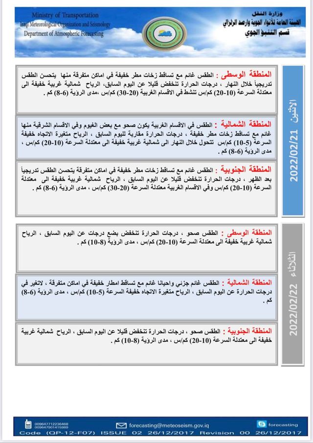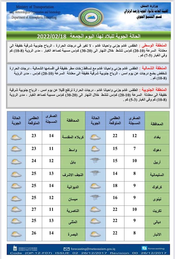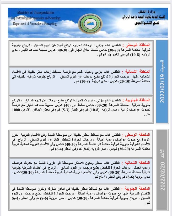 وأفادت الهيئة، في بيان تلقت “النعيم نيوز” نسخة منه، أن “الطقس في المنطقة الوسطى غائم جزئي وأحياناً غائم، ولا تغير في درجات الحرارة، أما الرياح جنوبية شرقية خفيفة إلى معتدلة السرعة”.