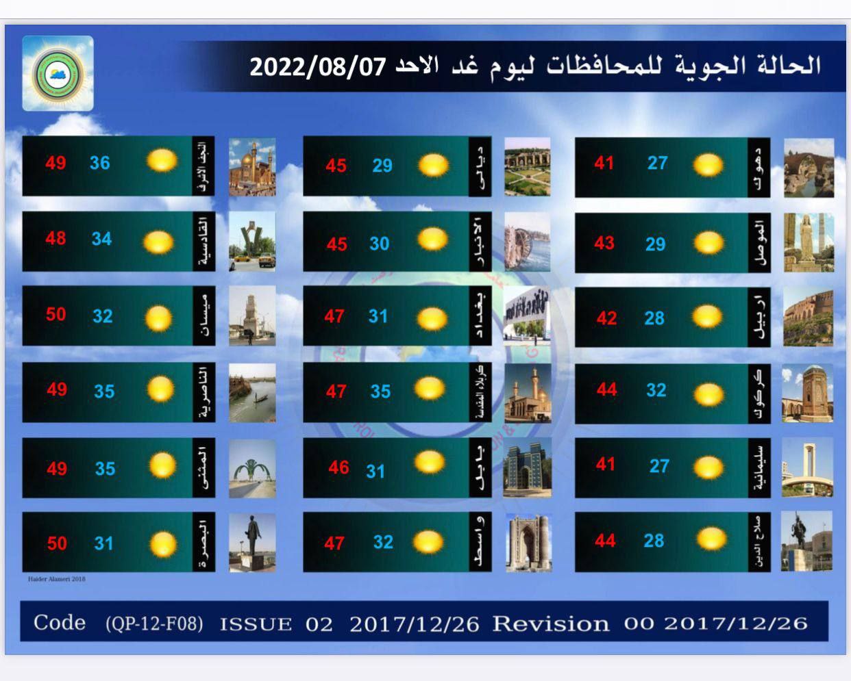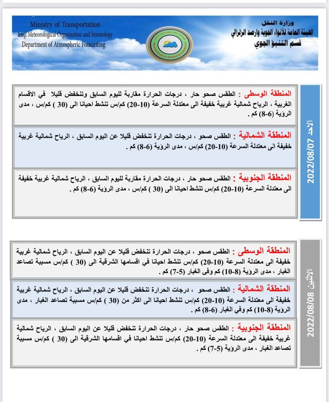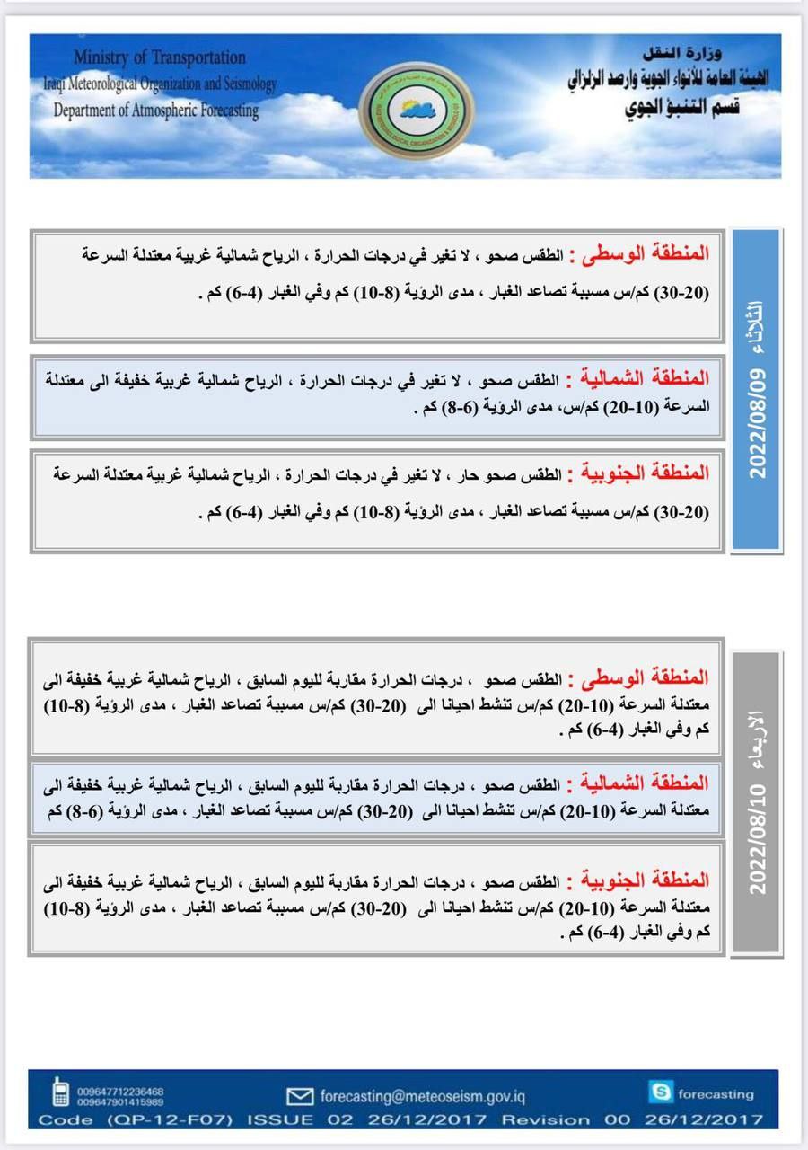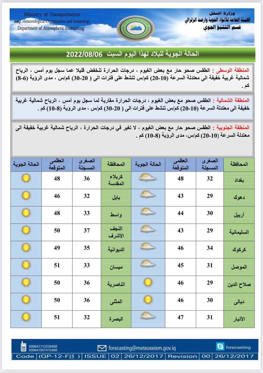 وذكرت الهيئة، في بيان تلقت “النعيم نيوز” نسخة منه، أن “درجات الحرارة ستنخفض هذا اليوم في المنطقة الوسطى، مع استقرارها في المنطقتين الشمالية والجنوبية، مع انخفاضها يوم غد بشكل أكبر في المناطق الغربية من المنطقة الوسطى“.