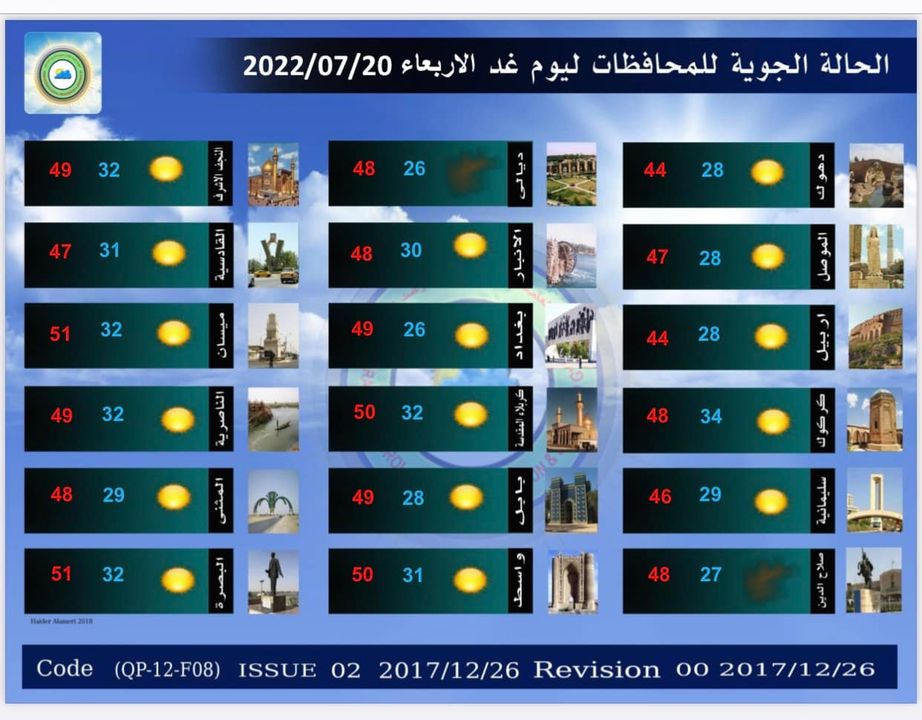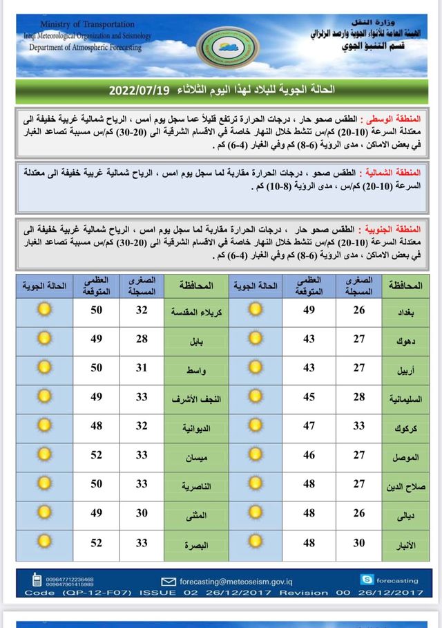 وذكرت الهيئة، في بيان تلقت “النعيم نيوز” نسخة منه، أن “الطقس في المنطقة الوسطى سيكون صحو وحار، ودرجات الحرارة ترتفع قليلاً عما سجل يوم أمس، أما الرياح شمالية غربية خفيفة إلى معتدلة السرعة”.