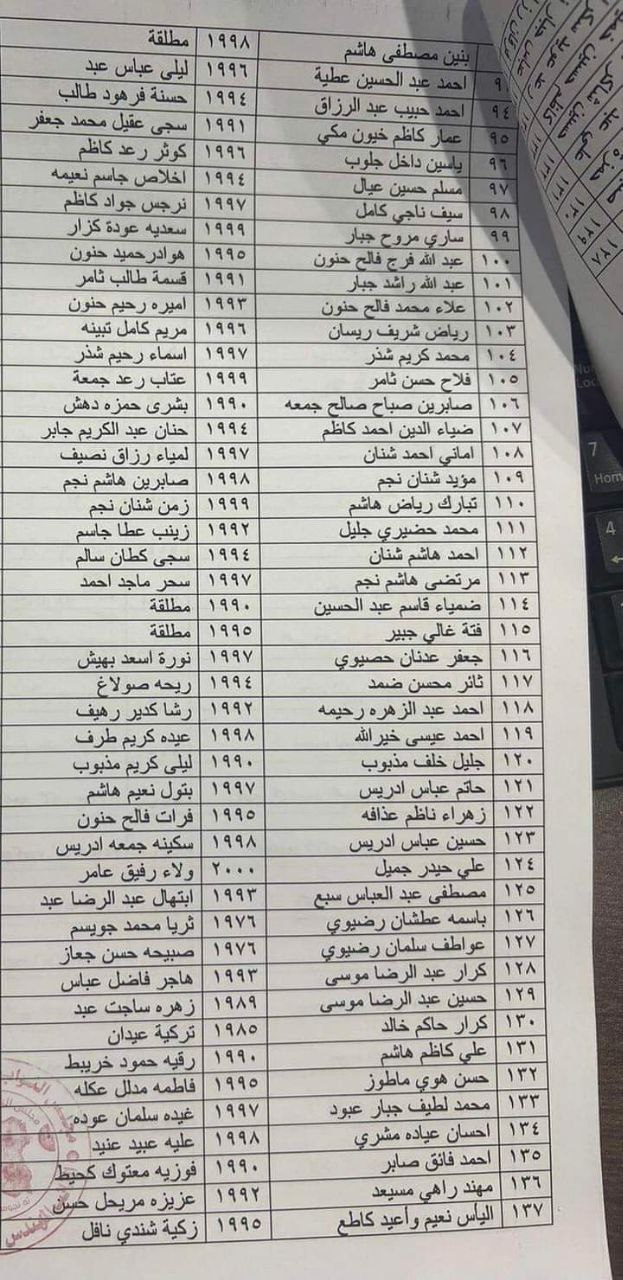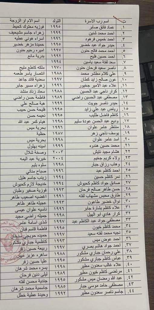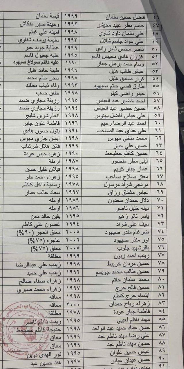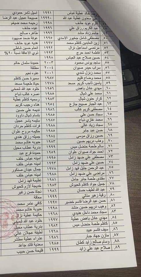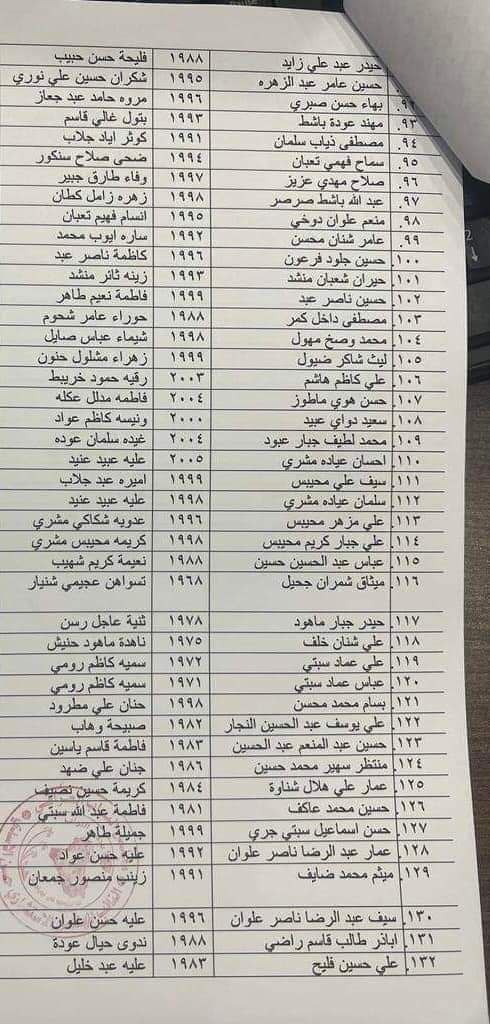 “ملاحظة:الرجاء من الاخوة اللي تم ادراج اسمائهم التواصل مع مدراء المكاتب لغرض اكمال المستمسكات المطلوبة علما ان الاسماء التي تمت الموافقة عليها موجودة لدى الاخوة مدراء المكاتب