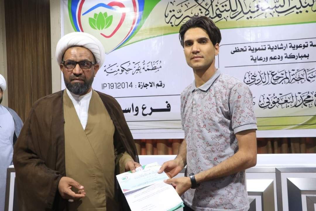 واضاف البيان “كان هناك حضور لمجمع المبالغات في واسط متمثلا بالمبلغة ام حسن توزيع الهداية على المتزوجين الشباب