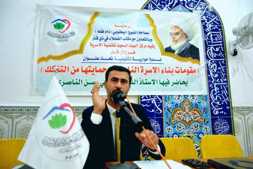 وأضاف أنه “بين فيها العمل والاهداف التي يسعى المركز لتحقيقها، وكذلك بيان الرعاية الابوية، والدعم المادي، والمعنوي الذي يحظى به المركز بصورة مباشرة من قبل سماحة الشيخ اليعقوبي فيما كانت محاضرة توعوية وتنموية للدكتور علي رسن الناصري بعنوان (مقومات بناء الاسرة الناجحة وحمايتها من التفكك) بين من خلالها مفهوم الاسرة الناجحة، تم ذكر الضوابط الشرعية لبناء الاسرة بناء صحيحا، ثم بين عوامل نجاح الاسرة، ثم ذكر الحقوق والواجبات لكلا الزوجين”.