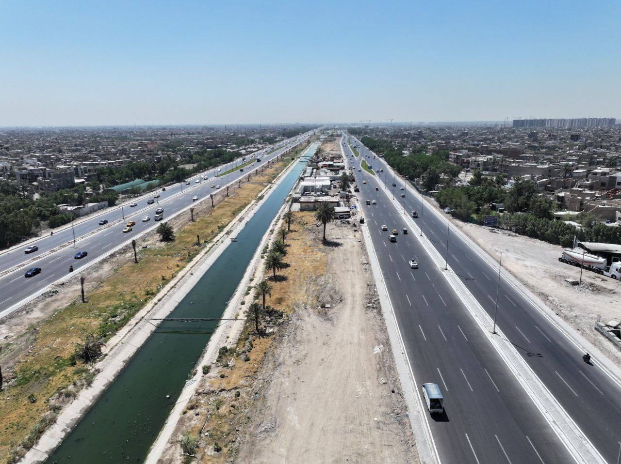 وأشار البيان، إلى أن “نسبة إنجاز الأعمال الإضافية للمشروع، بلغت ما يقرب من ١٠٪، ومن المؤمل إنجازها في شهر أيلول القادم”، لافتاً إلى أن “الأعمال المُنجزة للمشروع تضمنت المجسر الفوقاني، الذي يربط طريق محمد القاسم السريع مع قناة الجيش بطول ٥٦٠ متراً مع المُقتربات، والذي جرى افتتاحه في السابع والعشرين من شهر أيار الماضي، إضافة إلى تنفيذ 4 استدارات مجسرة ضمن قناة الجيش، لتأمين الانتقال الانسيابي بين جانبي القناة”.