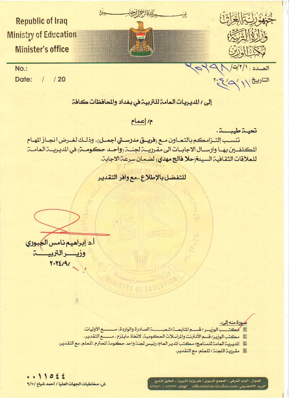 وذكر بيان للوزارة، تلقت “النعيم نيوز” نسخة منه، أن “وزارة التربية، اتخذت عدداً من الإجراءات العاجلة، لضمان التكامل المؤسسي داخل المنظومة التربوية، حيث تقرر الزام المديريات العامة للتربية كافة، بالتعاون مع فريق مدرستي أجمل، وإتاحة الفرصة لإنجاز المهام المكلفين بها”.