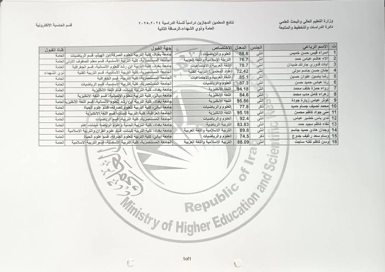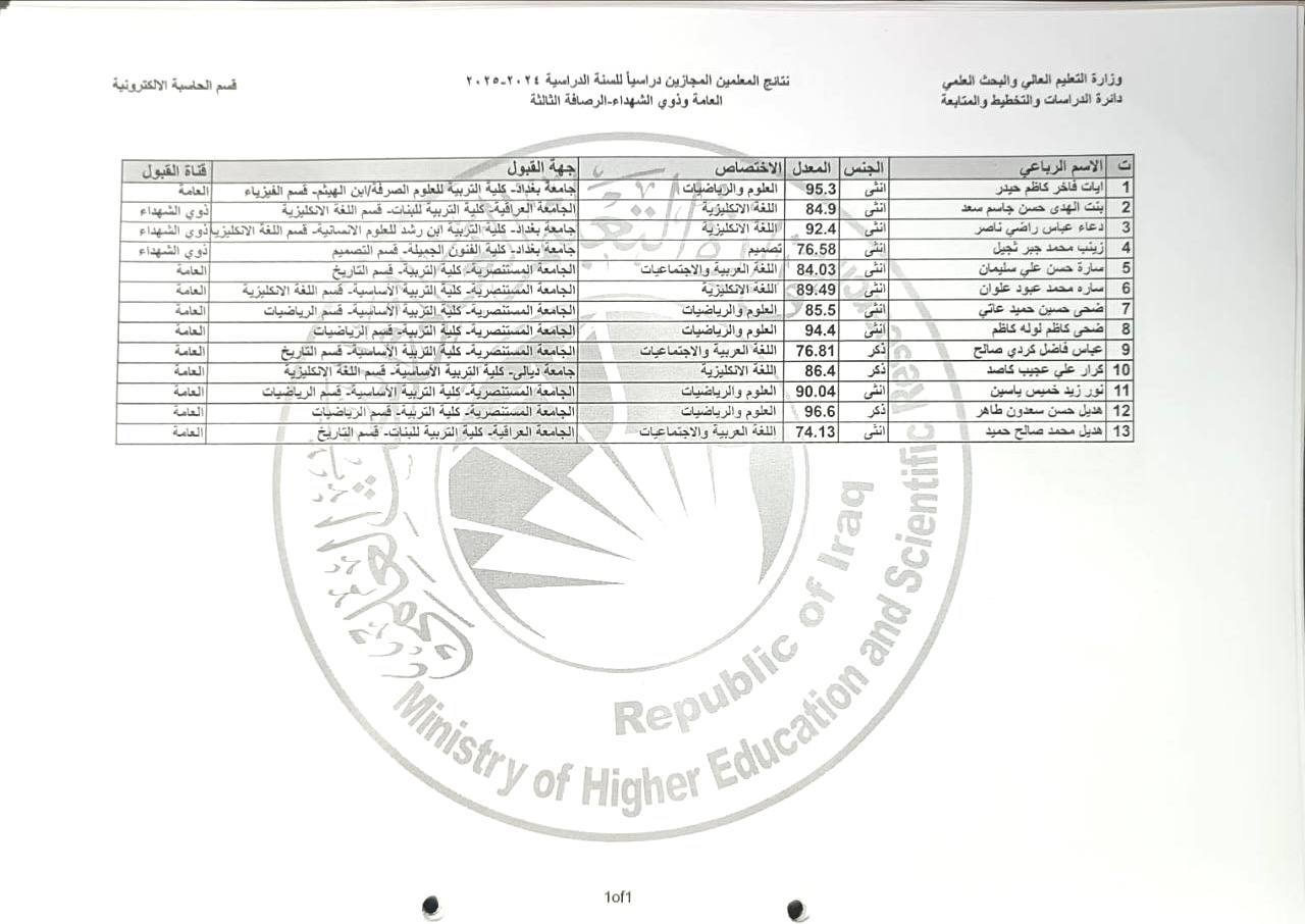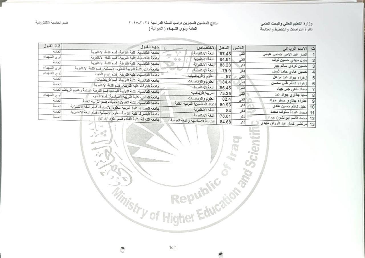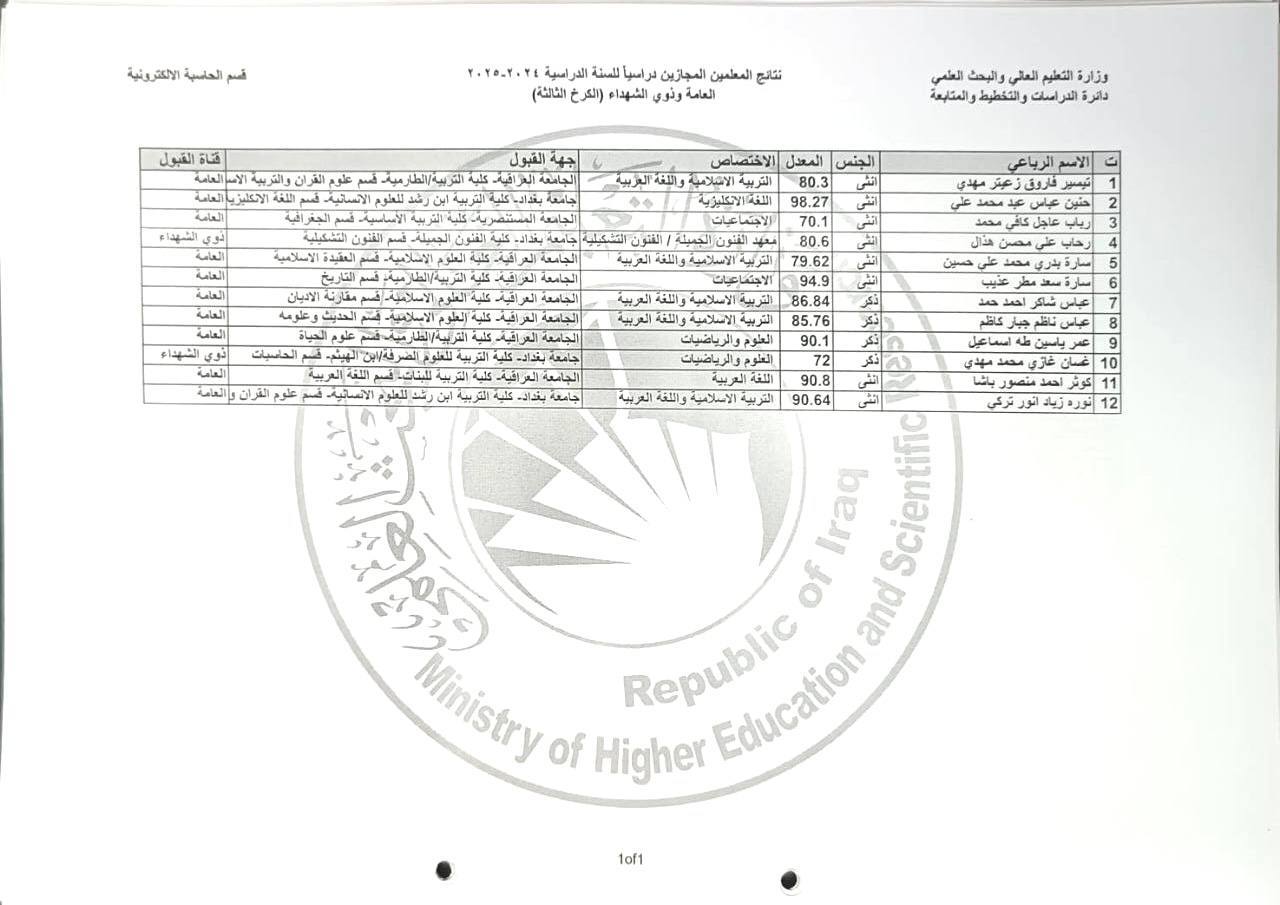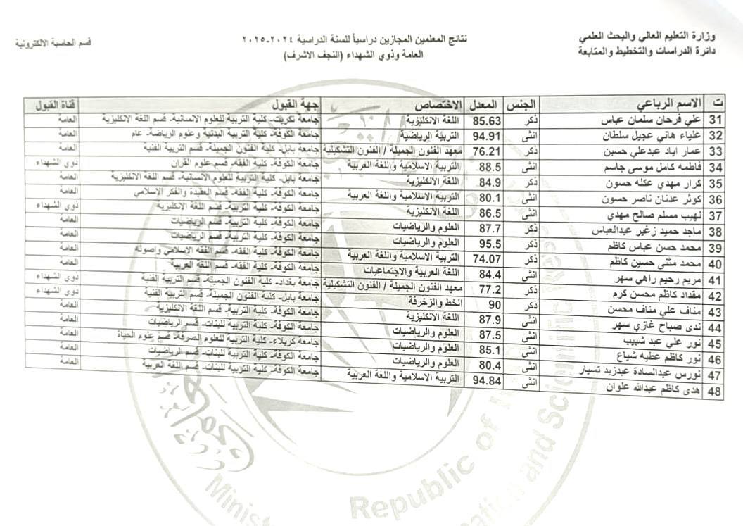 وقال بيان للوزارة، تلقت “النعيم نيوز” نسخة منه، “وزارة التربية/ المديرية العامة للعلاقات الثقافية/ مديرية الاجازات الدراسية، تعلن اسماء المتقدمين من المديريات العامة للتربية في بغداد والمحافظات كافة على ( قناة المعلمين ) ومنحهم اجازة دراسية لمدة اربع سنوات براتب وتفرغ تام لنيل شهادة البكالوريوس للعام الدراسي 2024-2025” …