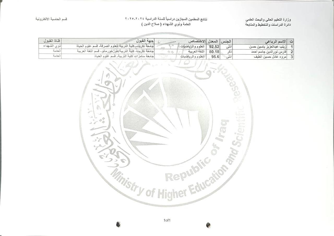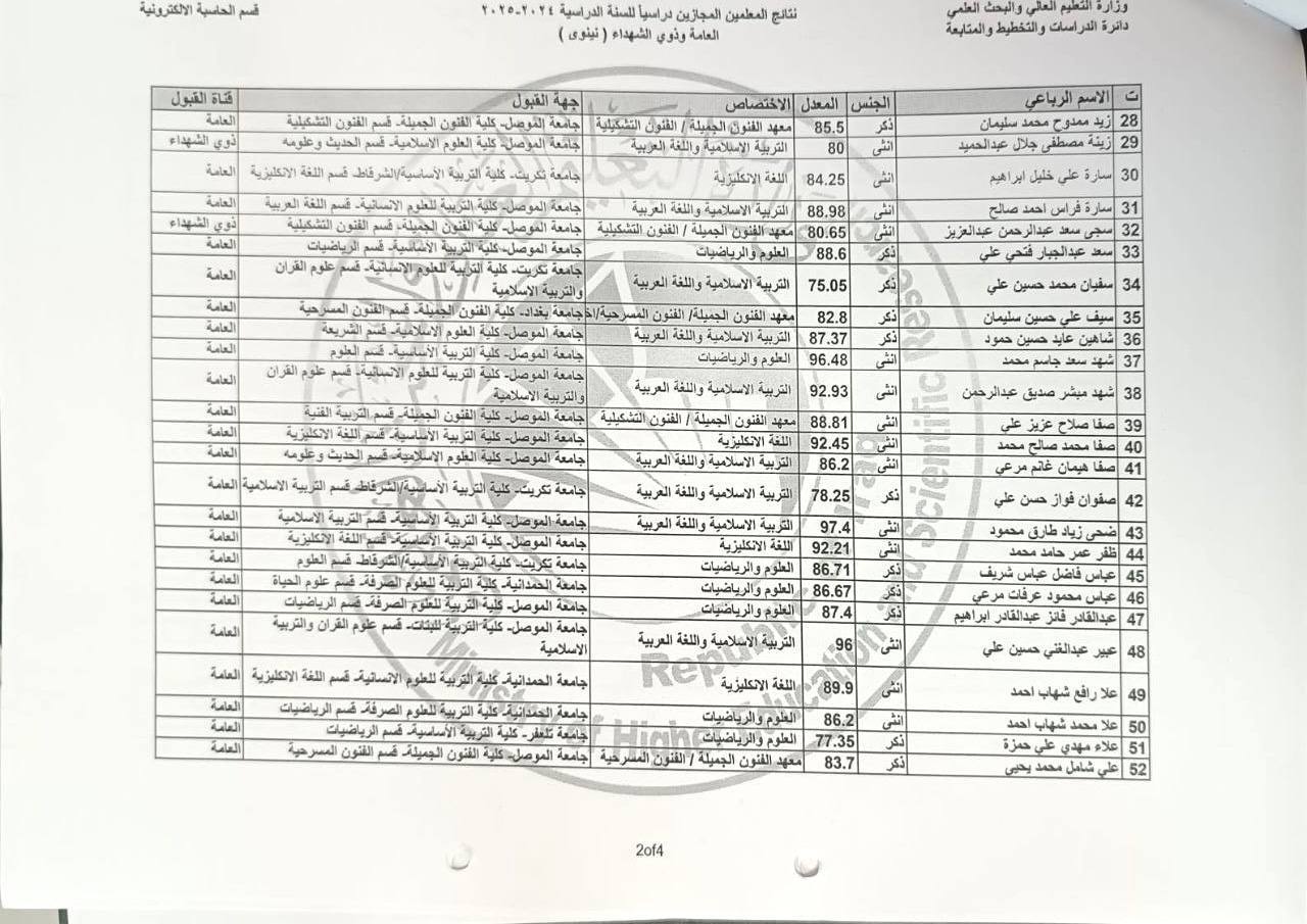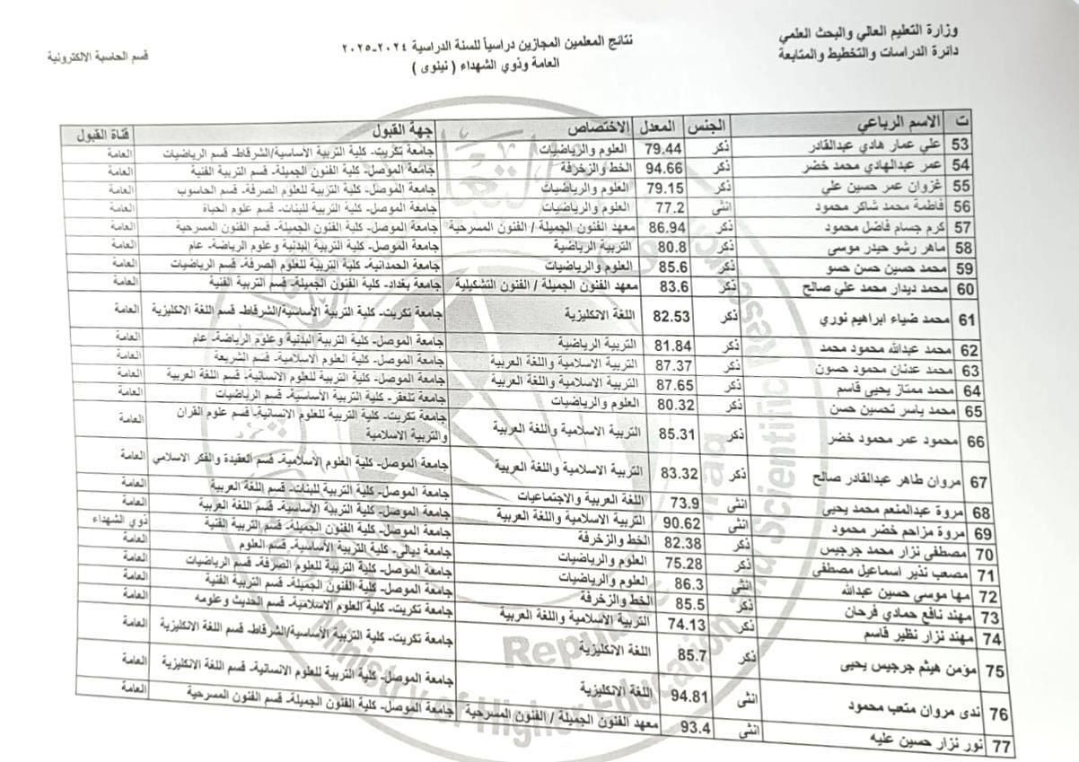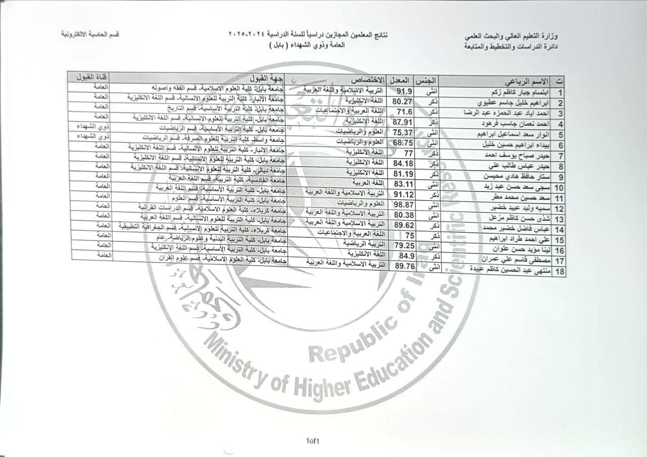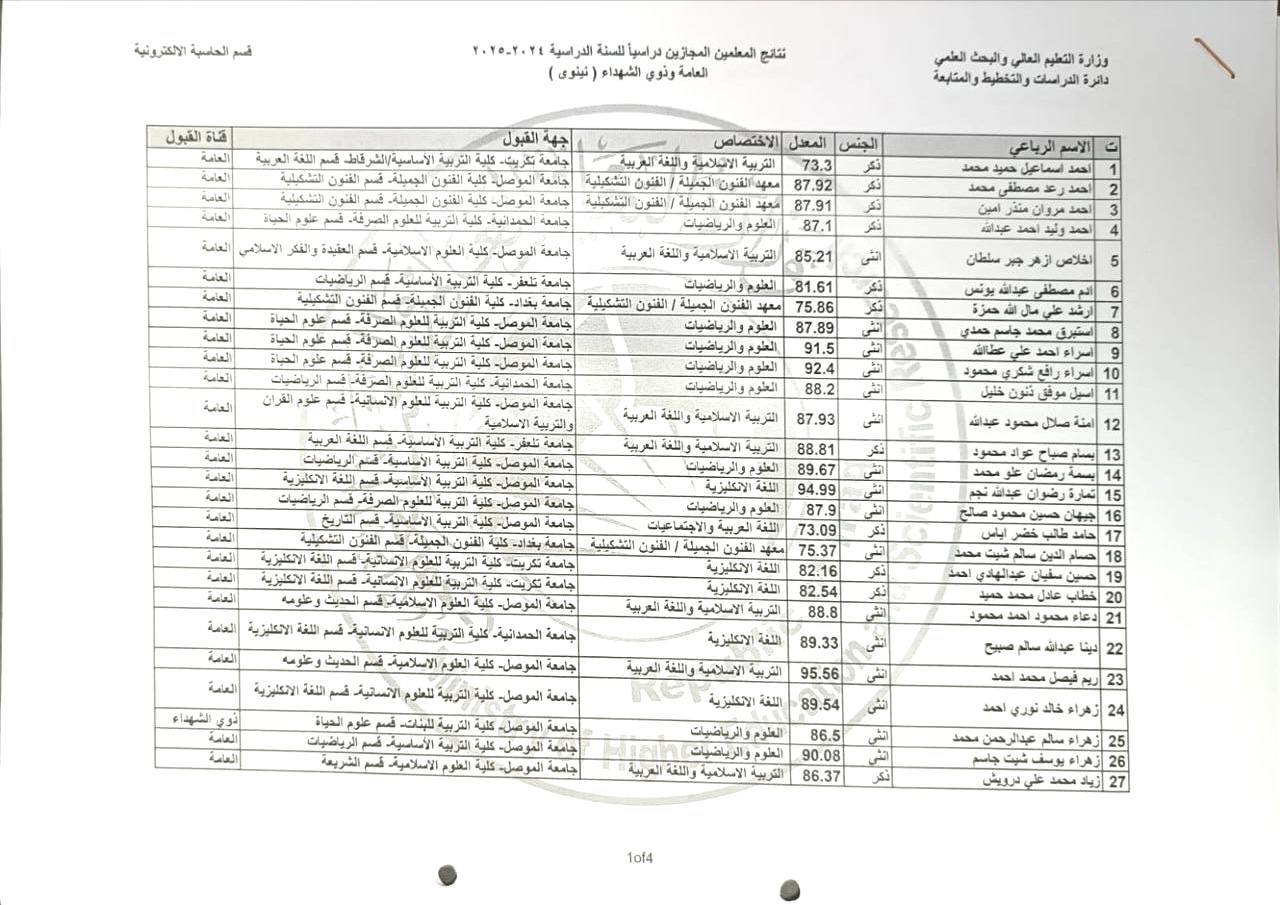 وقال بيان للوزارة، تلقت “النعيم نيوز” نسخة منه، “وزارة التربية/ المديرية العامة للعلاقات الثقافية/ مديرية الاجازات الدراسية، تعلن اسماء المتقدمين من المديريات العامة للتربية في بغداد والمحافظات كافة على ( قناة المعلمين ) ومنحهم اجازة دراسية لمدة اربع سنوات براتب وتفرغ تام لنيل شهادة البكالوريوس للعام الدراسي 2024-2025” …