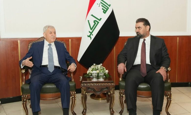 وذكر المكتب الإعلامي لرئيس مجلس النواب، في بيان تلقت “النعيم نيوز” نسخة منه، أن “رئيس مجلس النواب هيبت الحلبوسي، استقبل، رئيس الجمهورية، عبد اللطيف جمال رشيد، في مبنى المجلس، بحضور النائب الثاني، فرهاد الأتروشي”.