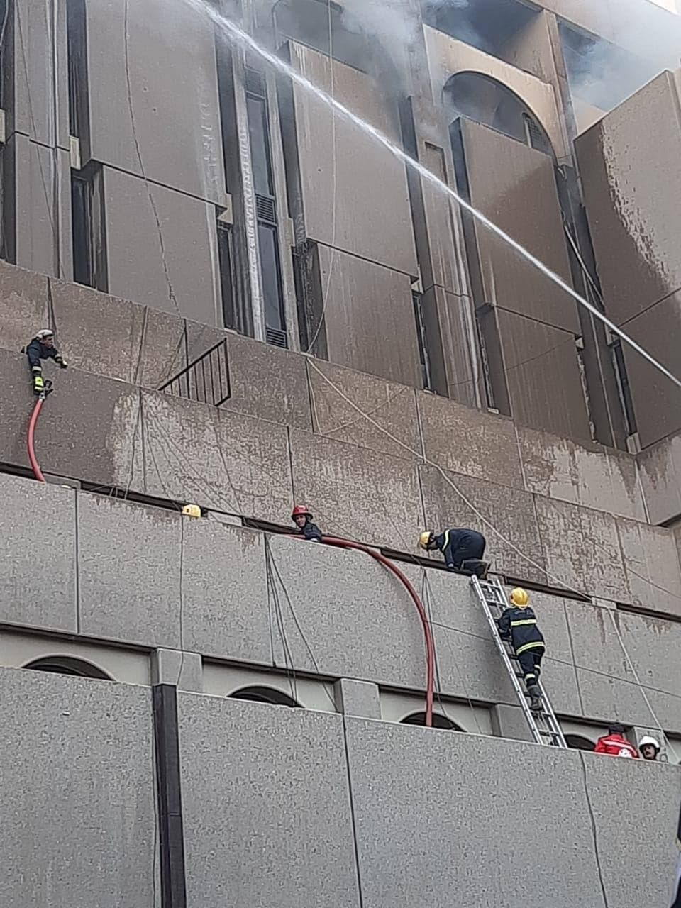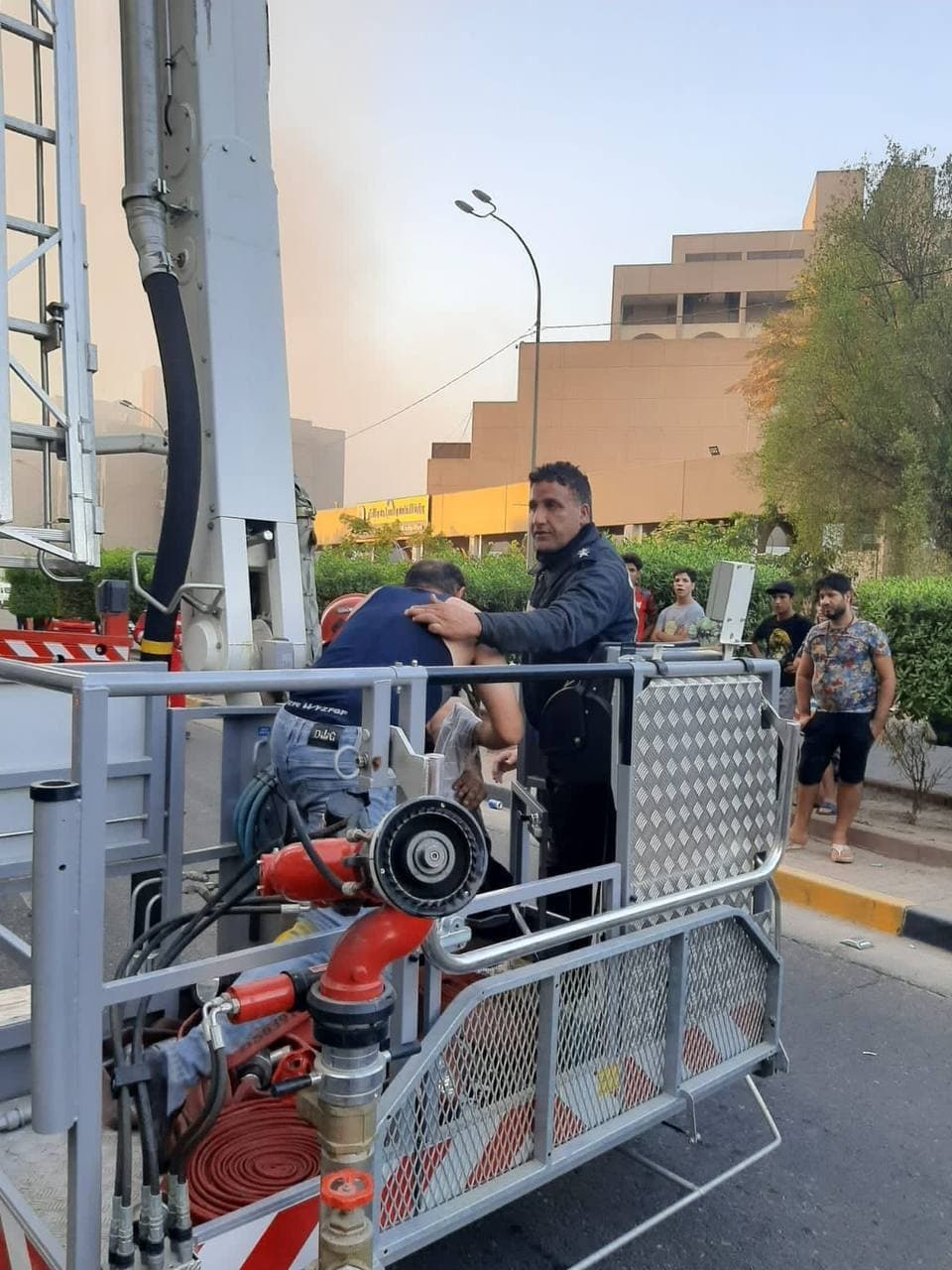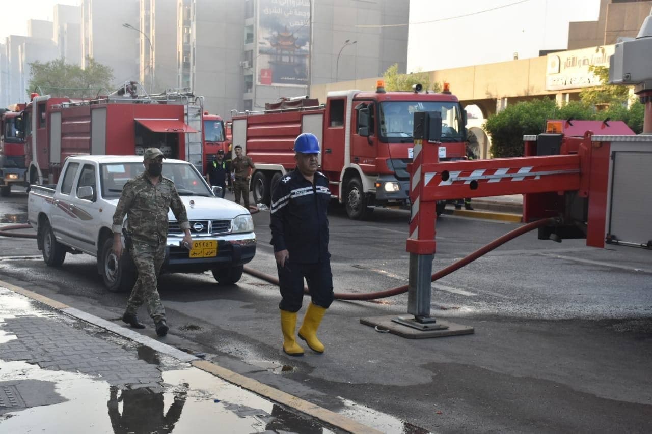 وأضافت أن” فرق إنقاذ الدفاع المدني تمكنت أيضا من انقاذ شخصين محتجزين من الموظفين كانوا داخل البناية. باستخدام سلّة عجلة السلم أيضا وتم اخراجهما وانزالهما بسلام وبصحة جيدة وبالإضافة لذلك تم إنهاء الحادث بدون تسجيل إصابات بشرية. مع تحجيم أضرارها المادية في الطابق السادس الذي يحتوي على عدد من مكاتب الموظفين” .