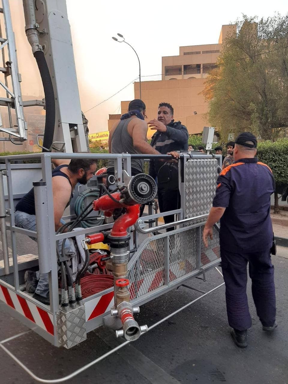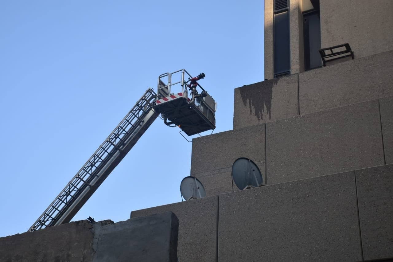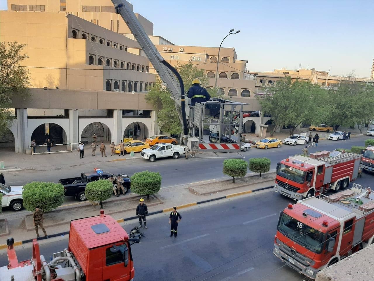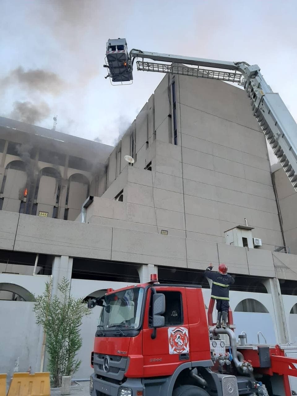 وأضافت أن” فرق إنقاذ الدفاع المدني تمكنت أيضا من انقاذ شخصين محتجزين من الموظفين كانوا داخل البناية. باستخدام سلّة عجلة السلم أيضا وتم اخراجهما وانزالهما بسلام وبصحة جيدة وبالإضافة لذلك تم إنهاء الحادث بدون تسجيل إصابات بشرية. مع تحجيم أضرارها المادية في الطابق السادس الذي يحتوي على عدد من مكاتب الموظفين” .