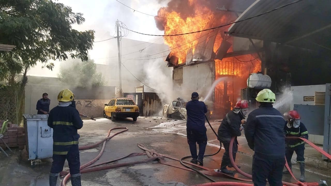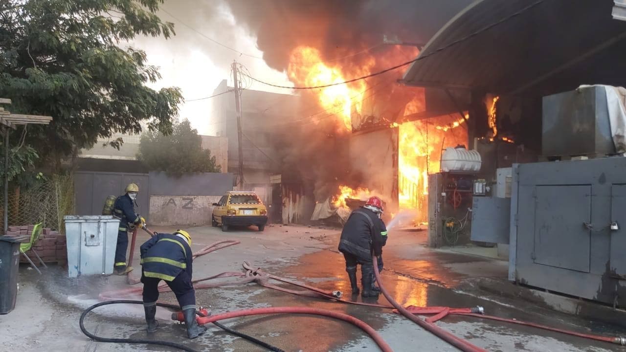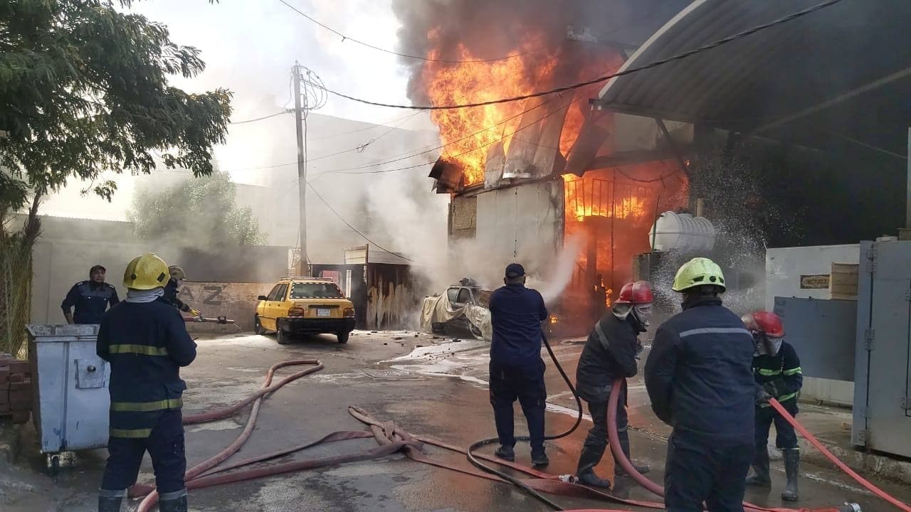 الدفاع المدني تخمد حريقاً كبيراً اندلع داخل مخزن مطبعة وسط بغداد (الصور)