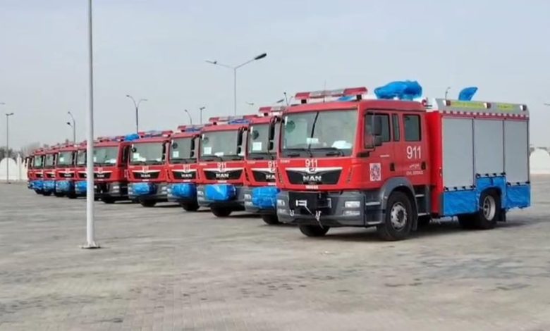 الدفاع المدني يتسلم دفعة جديدة من شاحنات الإطفاء الألمانية الحديثة