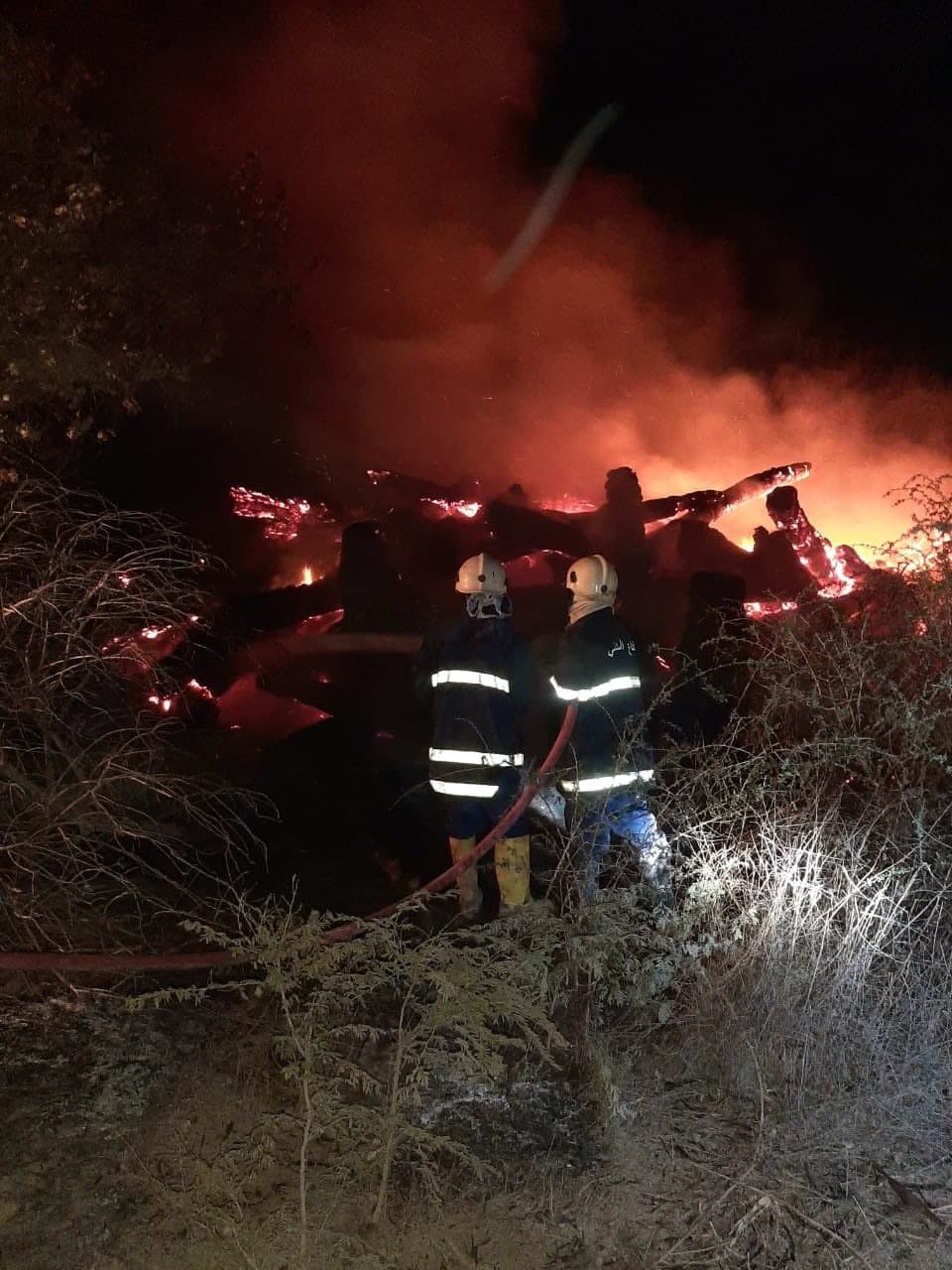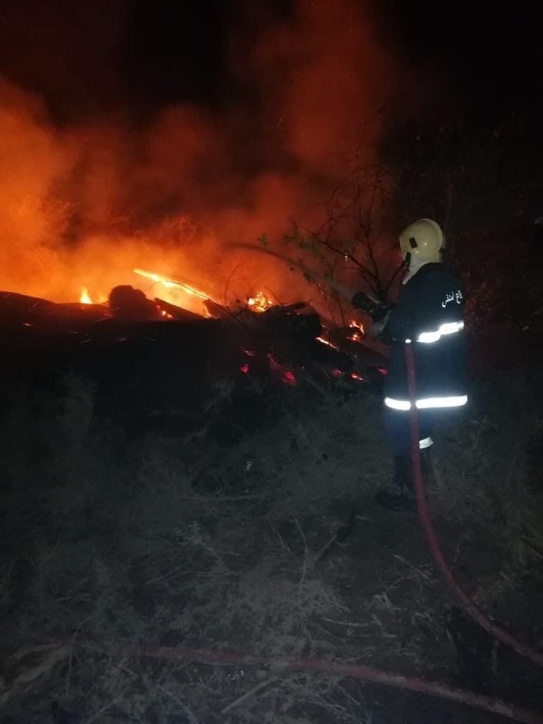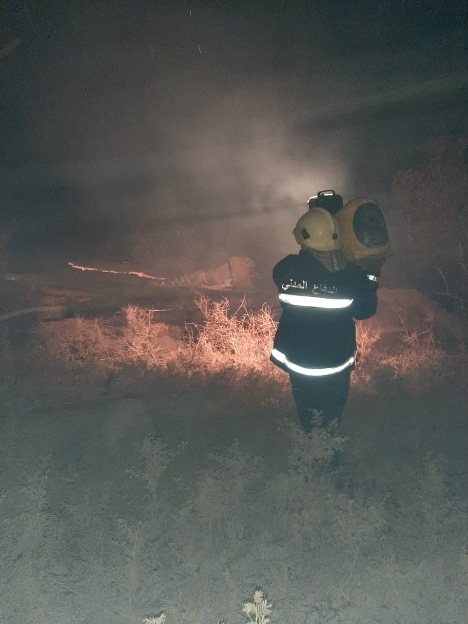 وتابعت، “ومنعت توسع النيران وانتشارها إلى البساتين المجاورة والدور السكنية القريبة من موقع الحادث. وبدون أي أضرار بشرية“.