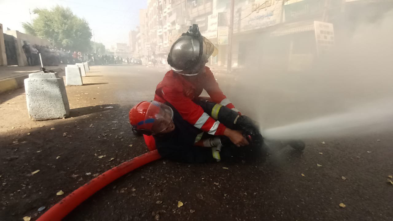 وأضاف، “حيث استنفرت فرق الدفاع المدني في جانب بغداد/الرصافة، ولاقت صعوبات كبيرة بسبب قطع الطرق”، مشيراً إلى أنه “مما استنزف الوقت على حساب توسع الحادث داخل البناية، واضطرها إلى زج عجلة السلم لتكافح الحريق من الأعلى إلى الأسفل، وتنجح بإنقاذ عامل من الجنسية البنغالية، وتنهي أعمال الإخماد والتبريد دون تسجيل خسائر بشرية مع تحجيم الأضرار المادية“.