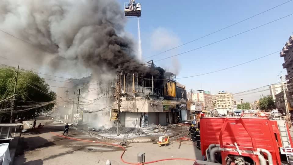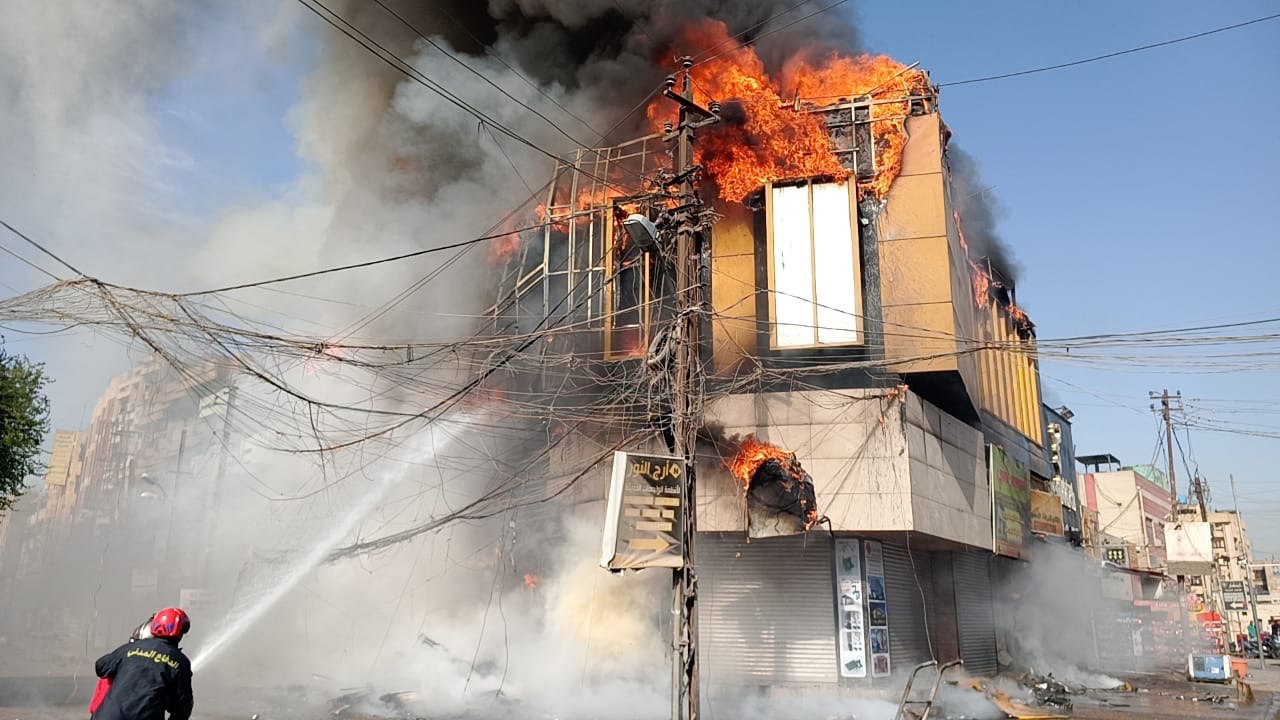 أعلنت مديرية الدفاع المدني، اليوم الخميس، عن إخماد حادث حريق كبير، اندلع داخل بناية تجارية مكونة من 4 طوابق، في منطقة ساحة النصر الباب الشرقي وسط العاصمة بغداد.
