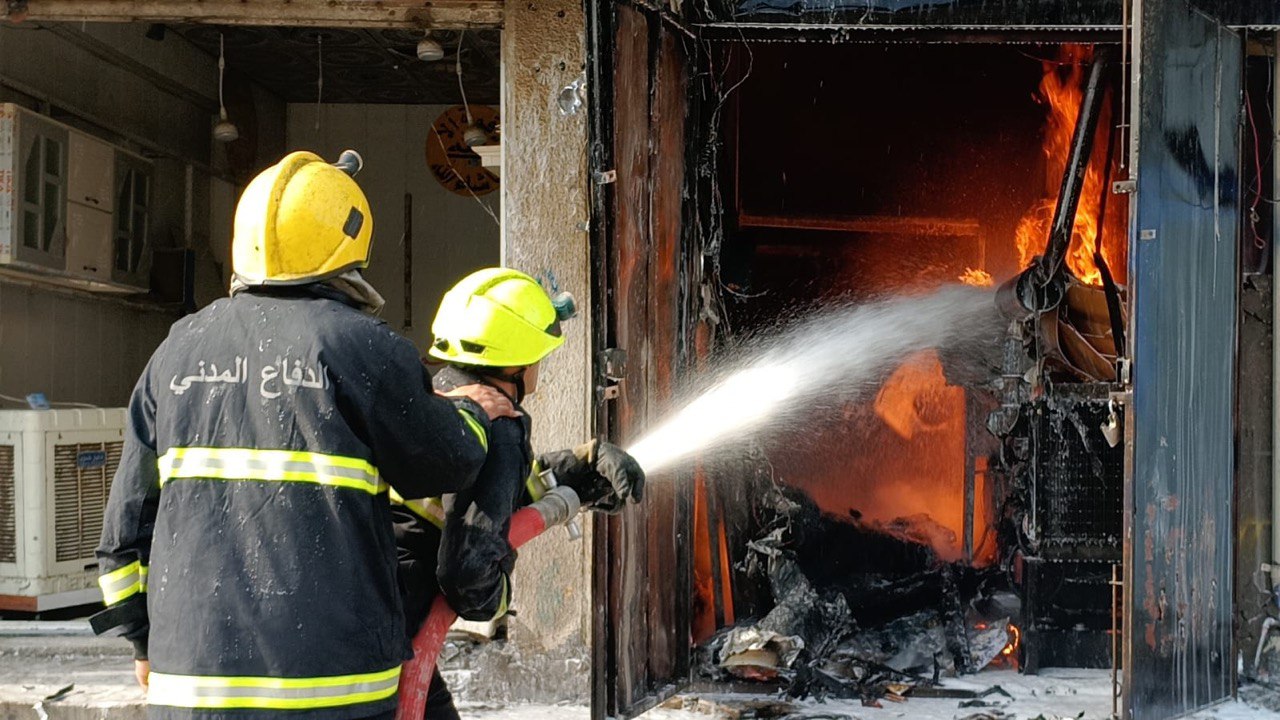 ‘في بغداد‘.. الدفاع المدني يخمد حريقاً داخل بناية تجارية وينقذ عاملاً (الصور+الفيديو)