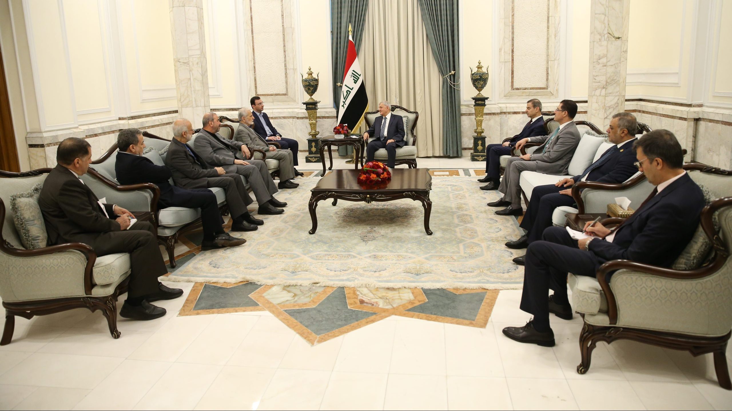 وذكر بيان لرئاسة الجمهورية، تلقت “النعيم نيوز” نسخة منه، أن “رئيس الجمهورية عبد اللطيف جمال رشيد، استقبل اليوم، في قصر بغداد، رئيس المجلس الاستراتيجي للعلاقات الخارجية في الجمهورية الإسلامية الإيرانية كمال خرازي، والوفد المرافق له”.