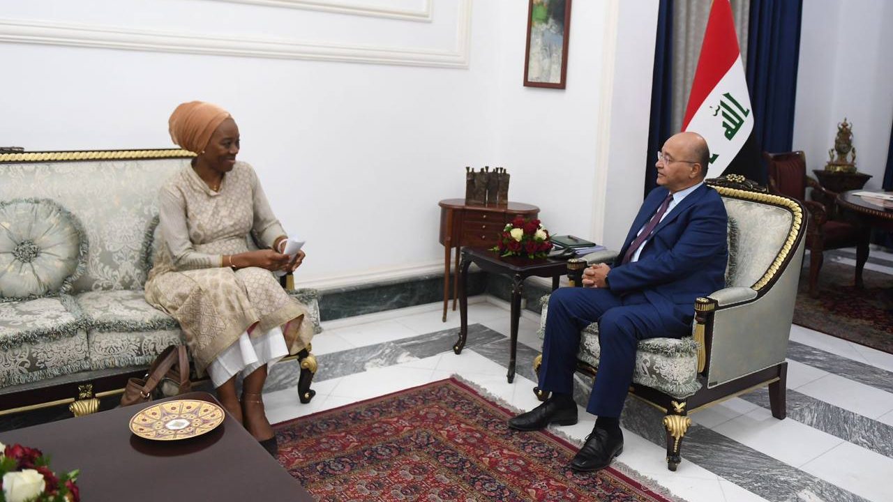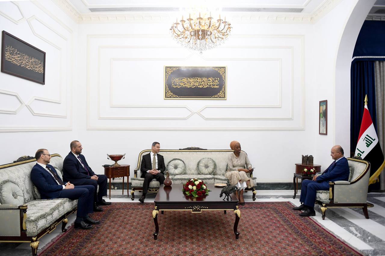 وذكر بيان لرئاسة الجمهورية، تلقت “النعيم نيوز” نسخة منه، أن “رئيس الجمهورية برهم صالح، استقبل اليوم، في قصر السلام ببغداد، نائب المدير العام لمنظمة الهجرة الدولية أوغوشي دانيلز”.