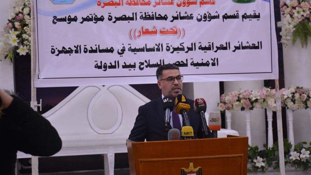 وتابع، “ومن هنا فإننا ندعو أبناء عشائرنا البصرية الأصيلة إلى دعم الدولة في بسط نفوذها، ومكافحة كل ما يخل بالأمن والاستقرار ومخالفة القانون، من أجل نشر السلم المجتمعي وتطوير واقع البصرة الاقتصادي، خدمةً لأهالي المحافظة والعراق”.