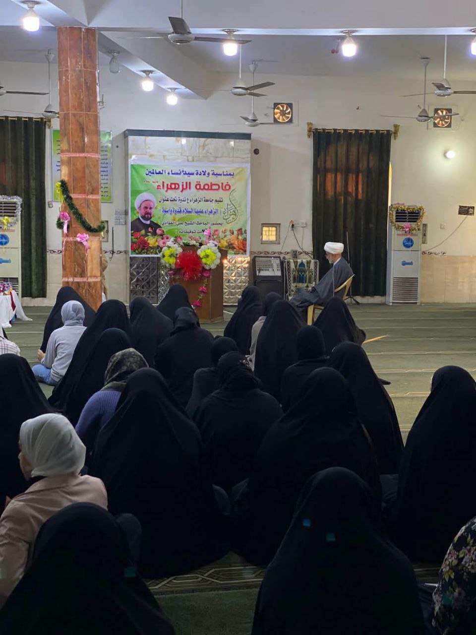 وقال بيان للجامعة، تلقت “النعيم نيوز” نسخة منه، “قامت جامعة الزهراء (ع) للعلوم الدينية والتبليغ/فرع بغداد الجديدة وبالتعاون مع مجمع المبلغات الرساليات/الرصافة الاولى ندوة تحت عنوان/الزهراء (عليها السلام) قدوة واسوة،القاها الشيخ علي الفوادي بمناسبة ولادة تفاحة الجنة،الطهر البتول،ام ابيها فاطمة الزهراء (عليها السلام)”.