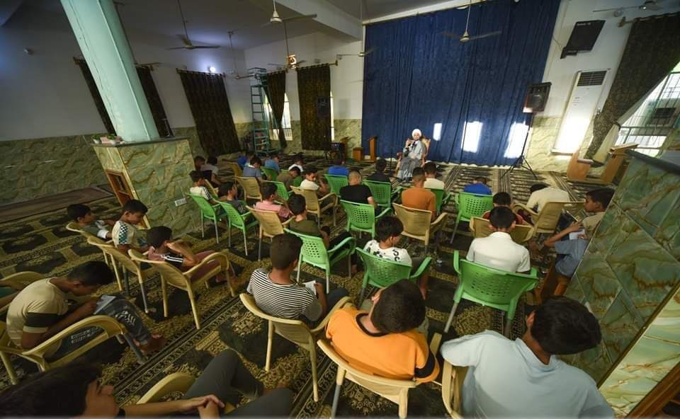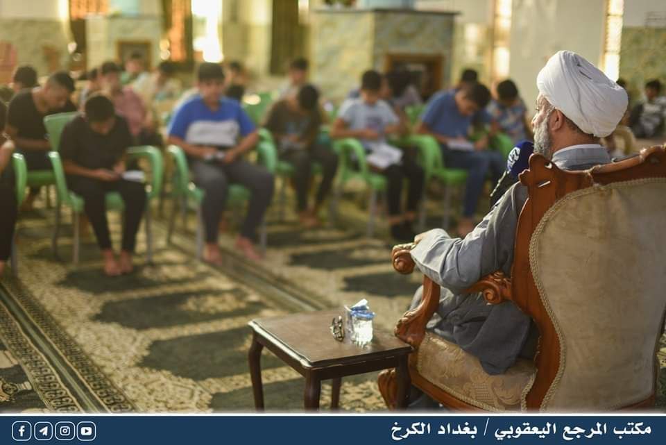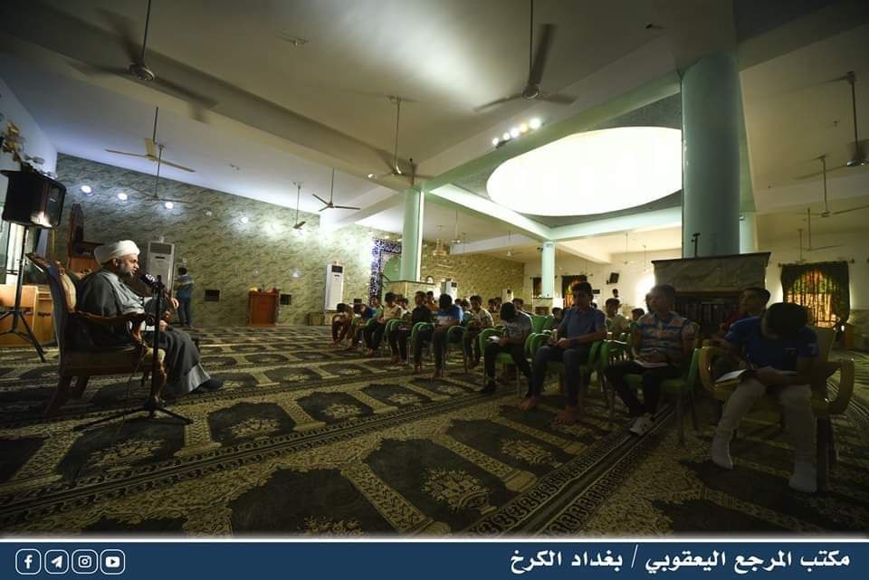القى مدير مكتب المرجع اليعقوبي / بغداد الكرخ الشيخ عادل الساعدي محاضرة توجيهية على جمع من الفتية ضمن برنامج الدورات الصيفية التي تقيمها رابطة وعي الطلابية أحدى تشكيلات مؤسسة ملتقى العلم والدين في منطقة الغزالية ببغداد .