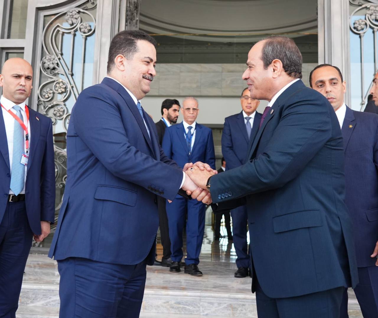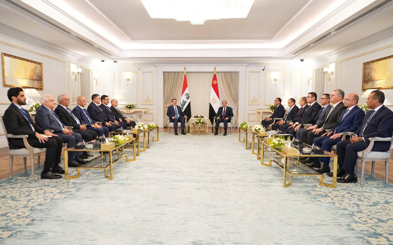 وأشار السوداني، بحسب البيان، إلى “عمق العلاقة بين العراق ومصر، التي قطعت شوطاً مهماً على مستوى التعاون المتميز، وما تشكله من محور ارتكاز يعود بالمنفعة للبلدين الشقيقين، وكذلك على استقرار المنطقة”، مؤكداً “حرص العراق في التعاون والانفتاح على الشركات المصرية، خصوصاً مجالات الإسكان والزراعة وإدارة المياه”.