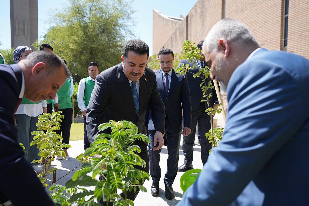 بادر رئيس مجلس الوزراء، محمد شياع السوداني، اليوم الأربعاء، بغرس فسيلة في حديقة الجامعة المستنصرية، دعماً لمبادرة رواد البيئة الشباب.