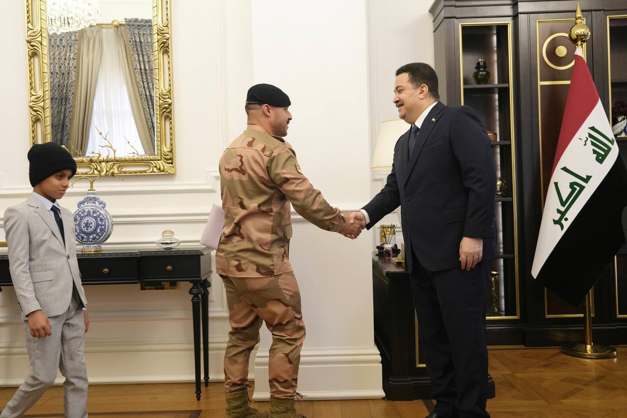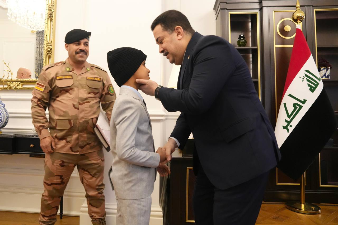 وذكر المكتب الإعلامي لرئيس مجلس الوزراء، في بيان تلقت “النعيم نيوز” نسخة منه، أن “رئيس مجلس الوزراء محمد شياع السوداني، استقبل اليوم، الطفل اليتيم المصاب (عبد السلام)، وهو من ضحايا الإرهاب البالغ من العمر 9 سنوات، يرافقه المواطن منهل أحمد عكلة، المتكفل برعايته، وهو أحد منتسبي الجيش العراقي، بعد أن أنقذه خلال معارك تحرير الموصل، وأنقذ عدداً آخر من الأطفال”.