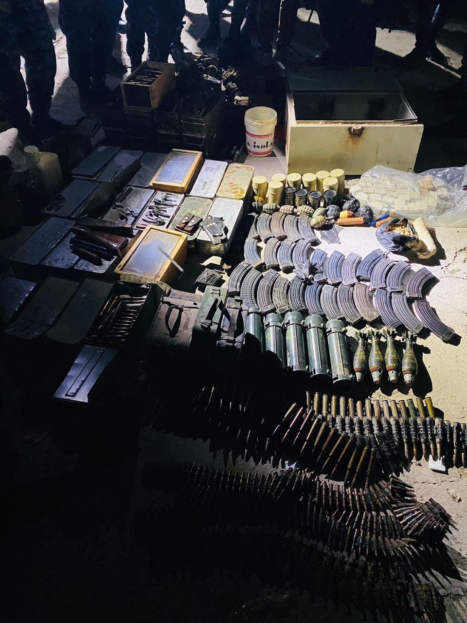 وذكرت الشرطة في بيان، تلقت “النعيم نيوز” نسخة منه، “وفقاً لمعلومات استخبارية دقيقة وبعملية نوعية ، نفّذت قوة من الفوج الثاني اللواء الآلي الأول الفرقة الآلية بإسناد مفارز الجهد الاستخباري. عملية استباقية في ديالى. أسفرت عن العثور على 11قنبرة هاون 60 ملم ،20 رمانة يدوية. 5 شريط سلاح احادية 12.7، 1600 غم مادة البارود. 12 حاوية سلاح BKC، عجينة TNT ، مواد اخرى. 1628 اطلاقة أسلحة مختلفة الأنواع، تم التعامل مع المواد المضبوطة اصولياً”.
