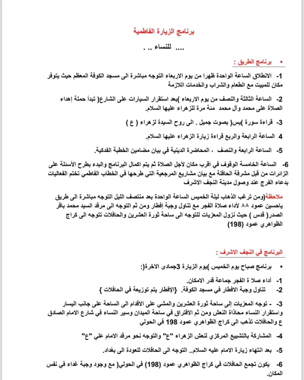 وقال الشيخ العبودي، في بيان تلقت “النعيم نيوز” نسخة منه، إنه “على بركة الله تعالى، نعلن عن البرنامج الخاص (رجال ونساء) للزيارة الفاطمية الكبرى في النجف الأشرف، بمشاركة 600 حافلة“، مبيّناً أن “البرنامج يخص فقط بغداد – الرصافة”.